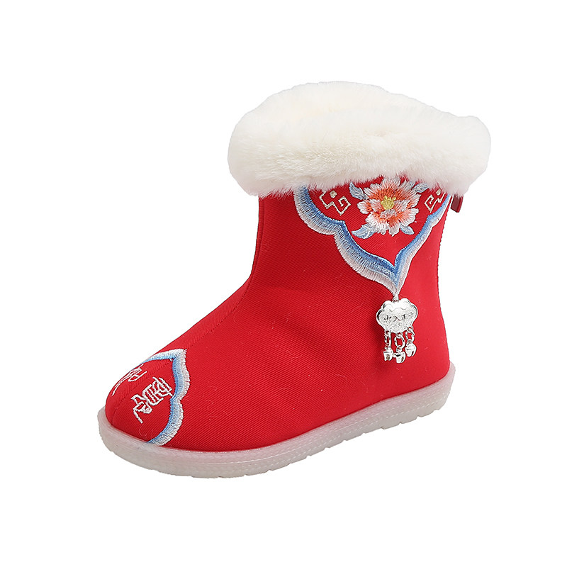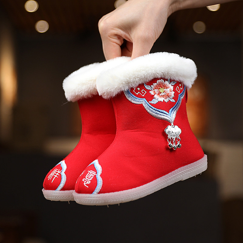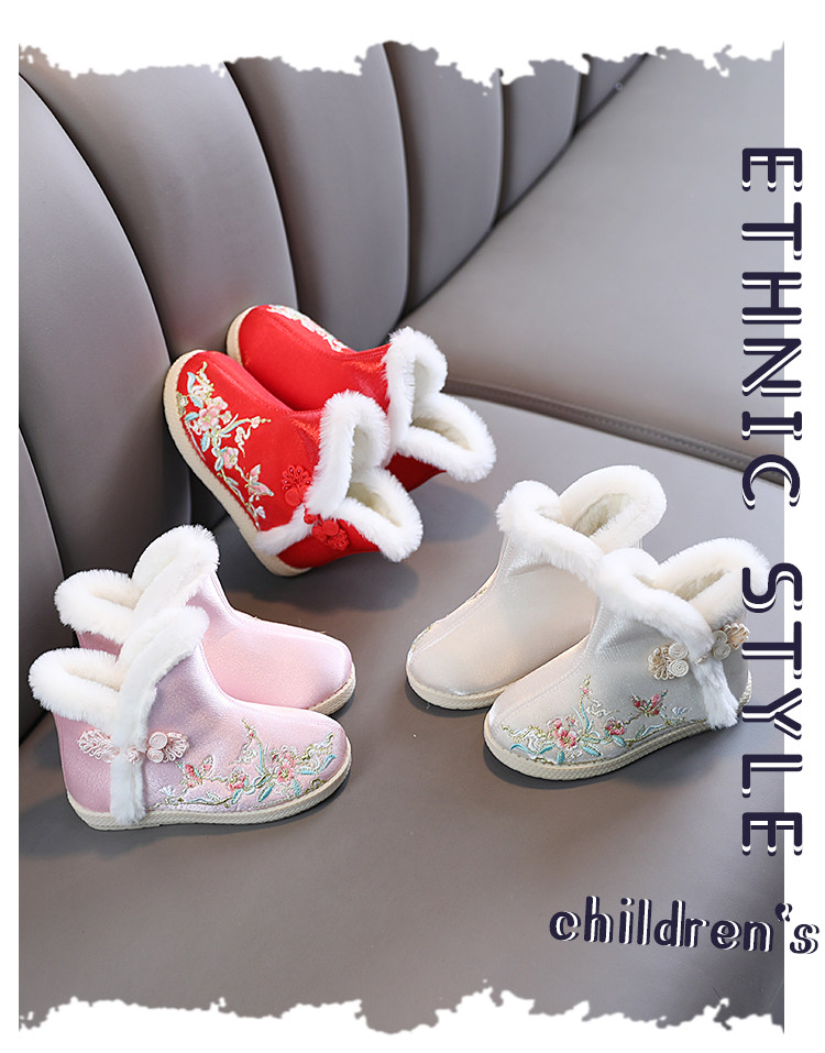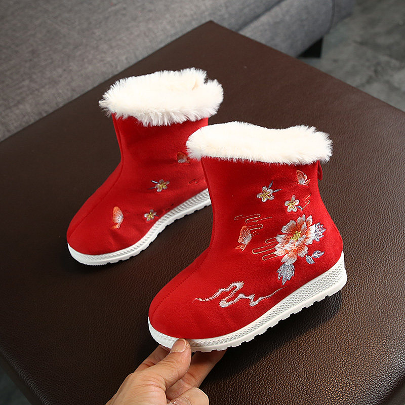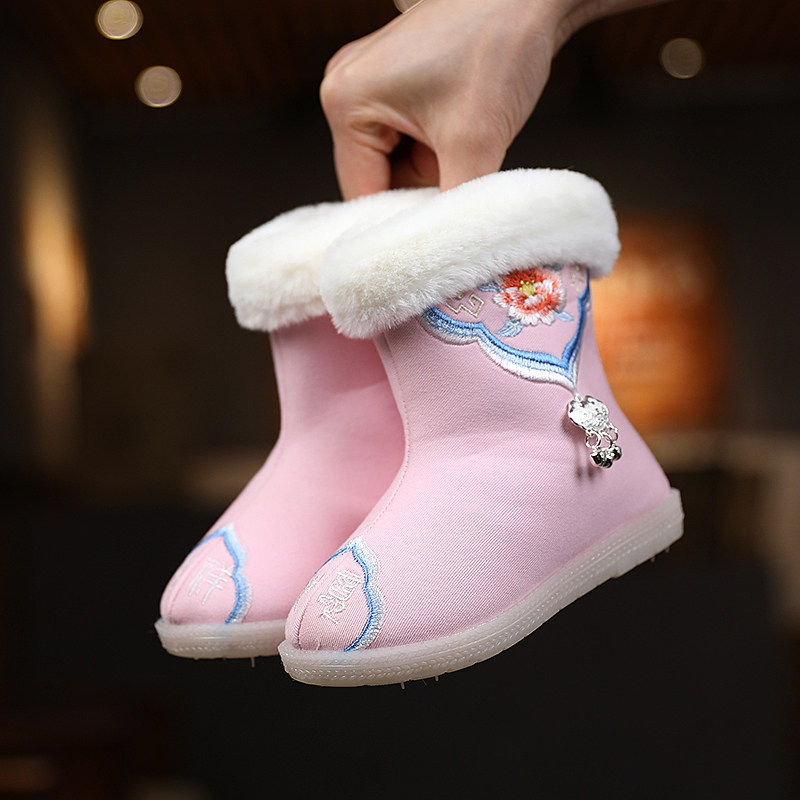 Зимние сапоги, детское ханьфу, этническая детская флисовая обувь, китайский стиль, этнический стиль