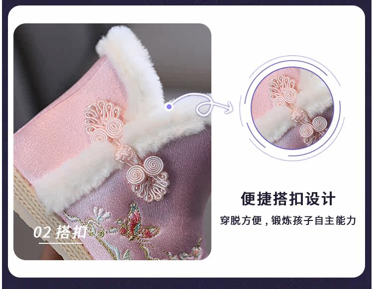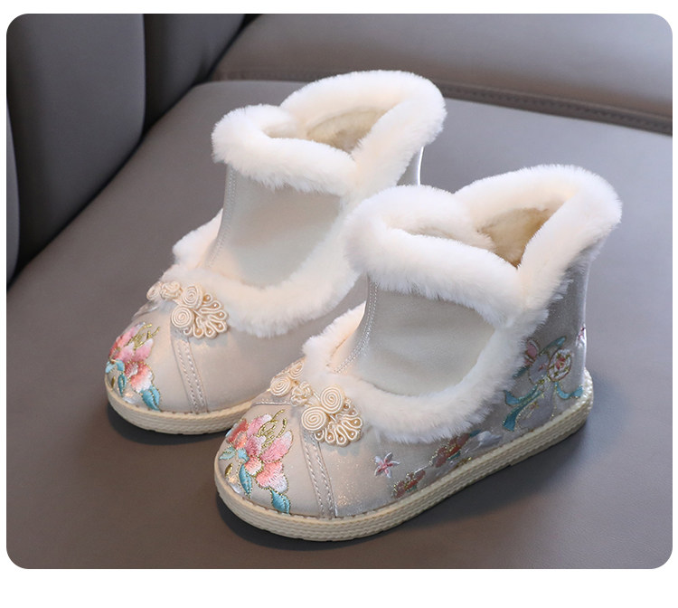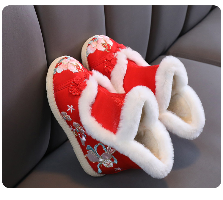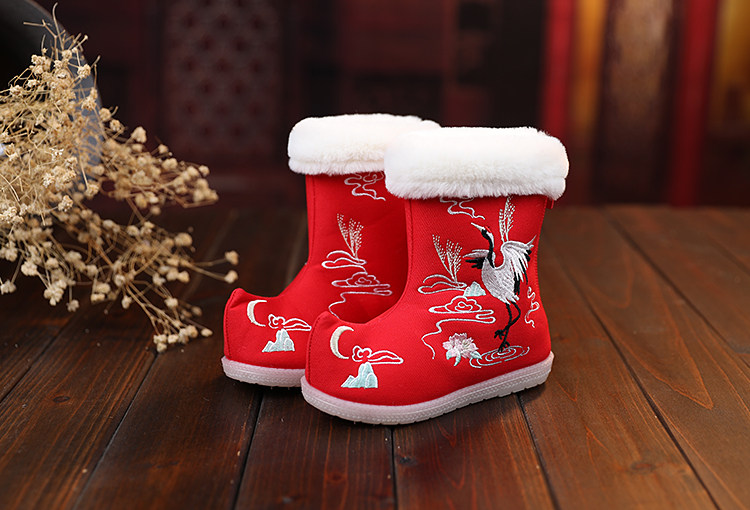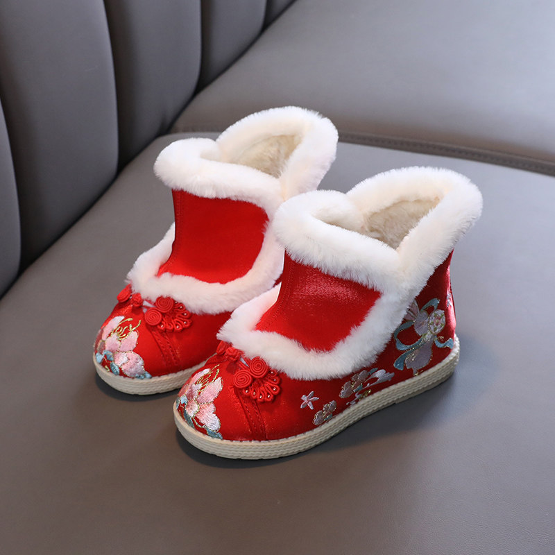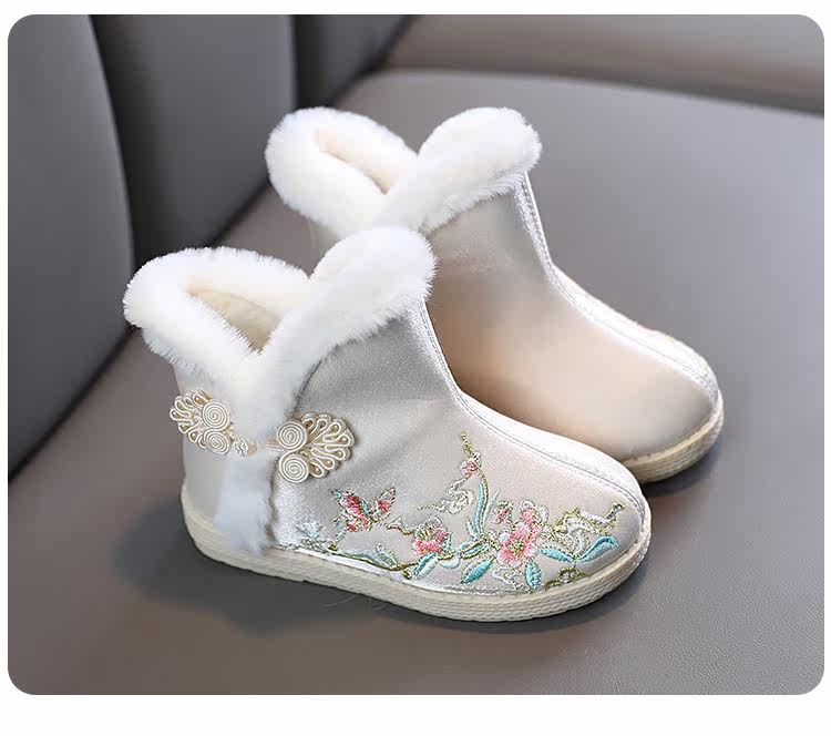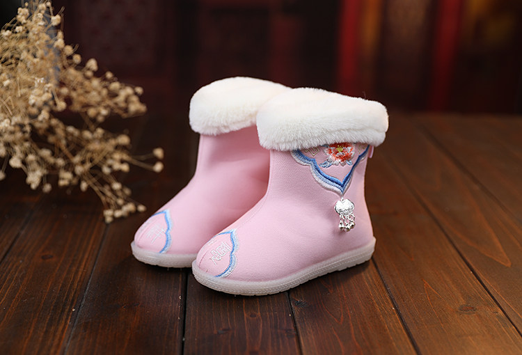 Зимние сапоги, детское ханьфу, этническая детская флисовая обувь, китайский стиль, этнический стиль
