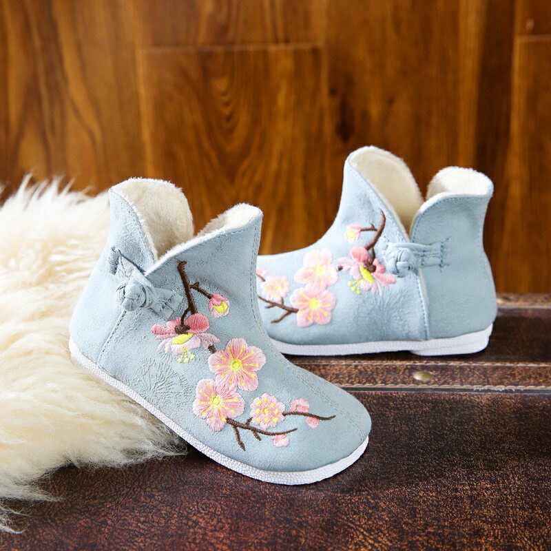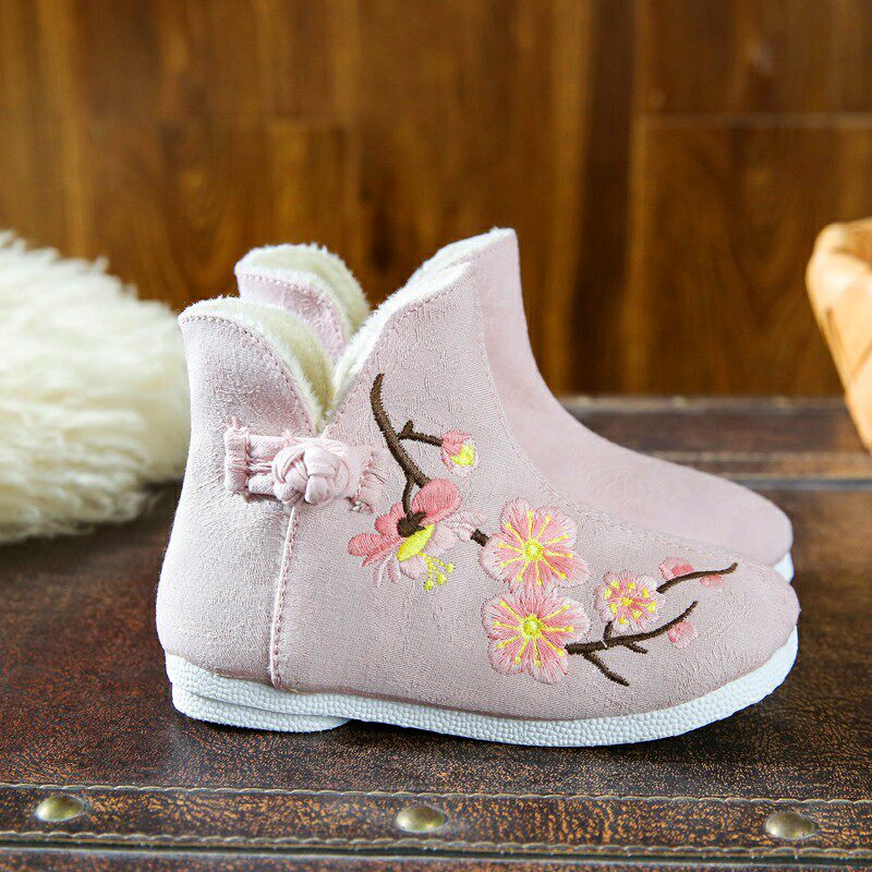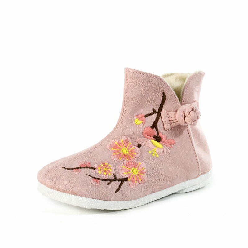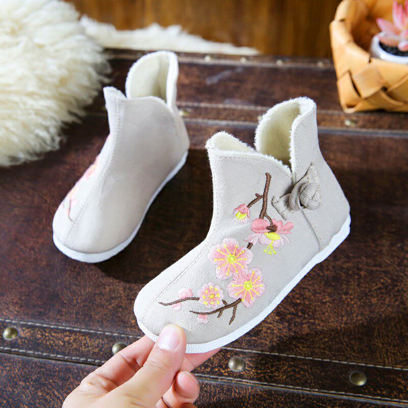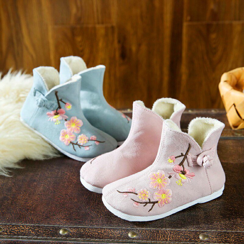 Ханьфу, зимние флисовые ретро детские ботинки, китайский стиль, с вышивкой