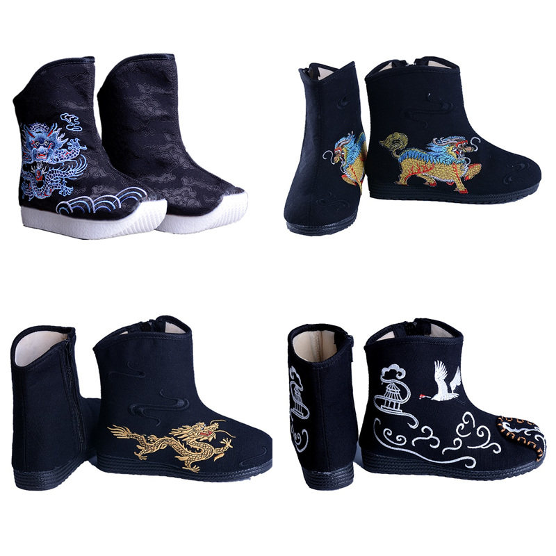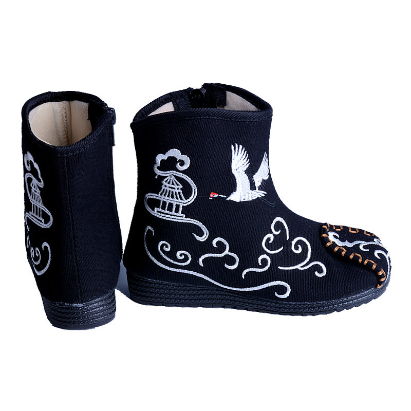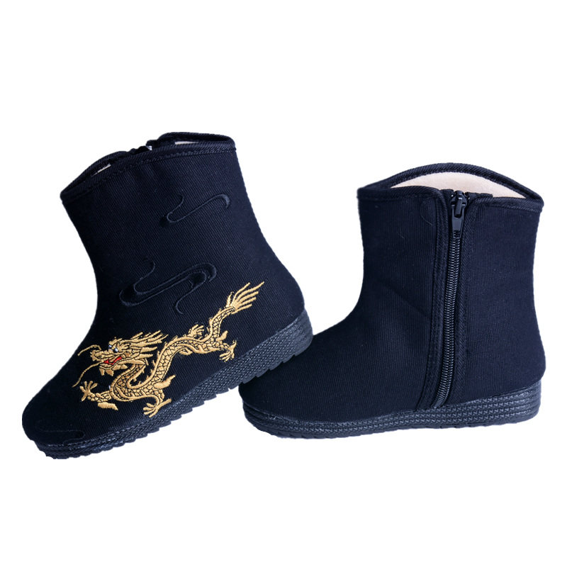 Демисезонные флисовые детские сапоги для мальчиков, ханьфу для отдыха, ботинки, китайский стиль, с вышивкой