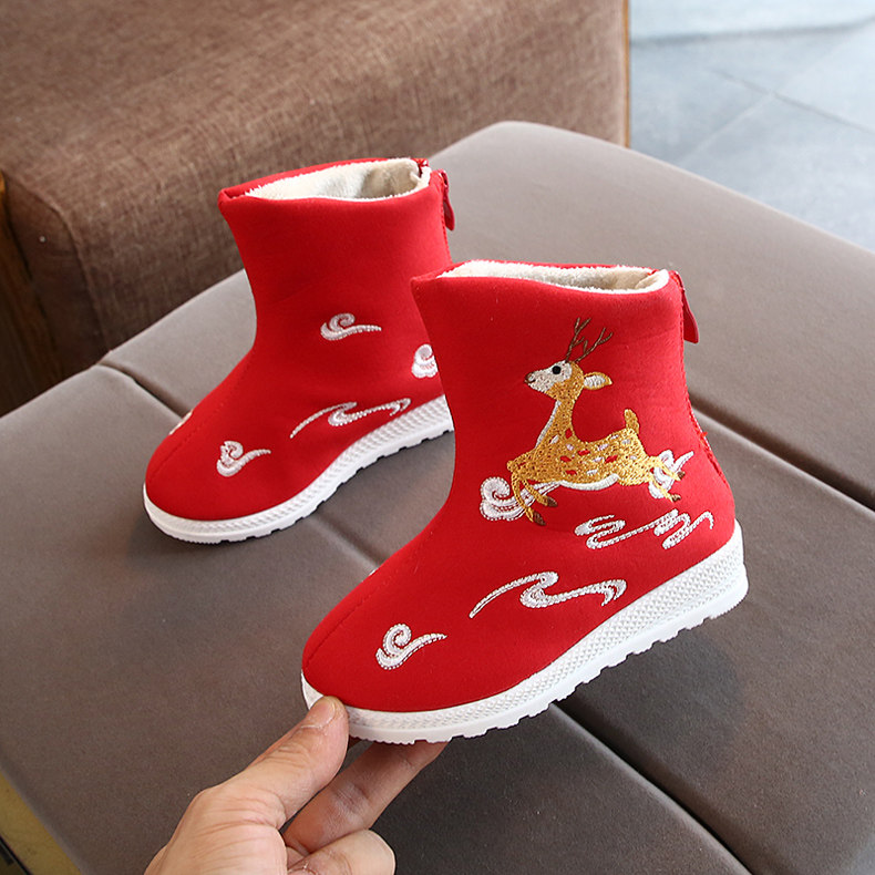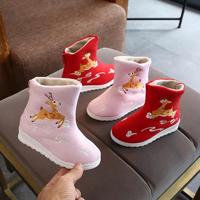 Детская обувь, демисезонное этническое ханьфу для девочек, ретро короткие сапоги, 2019, этнический стиль, с вышивкой