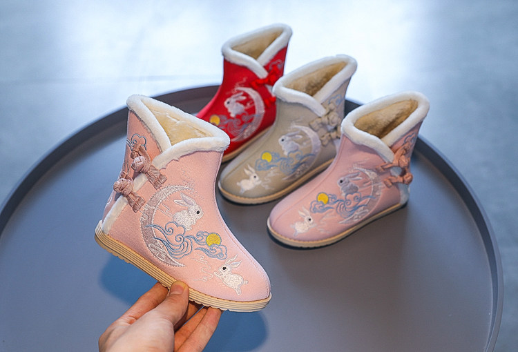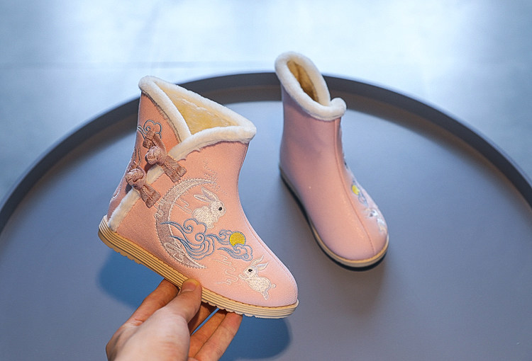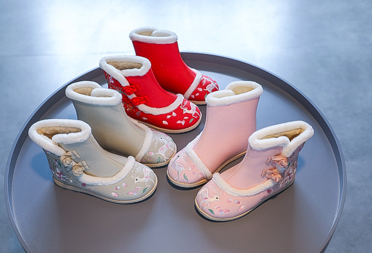 Ханьфу, детская обувь, флисовые этнические зимние слипоны для принцессы, этнический стиль