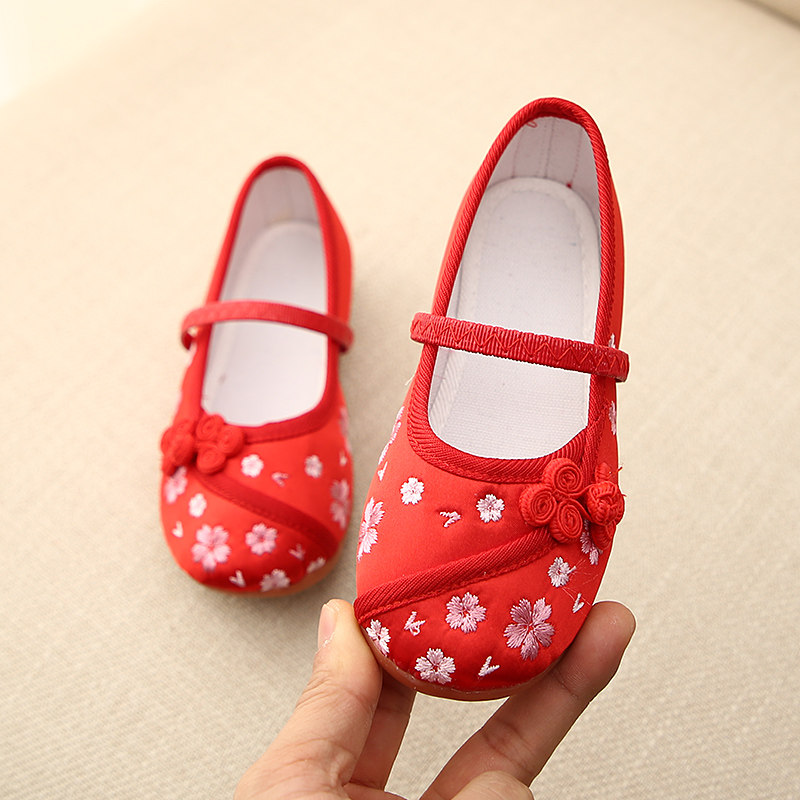 Девочки с вышивкой обувь Новая старая пекинская детская ткань обувь ретро Ханфу обувь этнический стиль студенческий танцевальный спектакль обувь