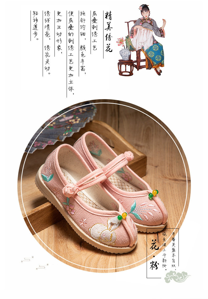 Jiannan House House Hanfu обувь девочка вышитая обувь осенние детские храмовые туфли супер феи древняя ветряная туфли детская обувь детская обувь