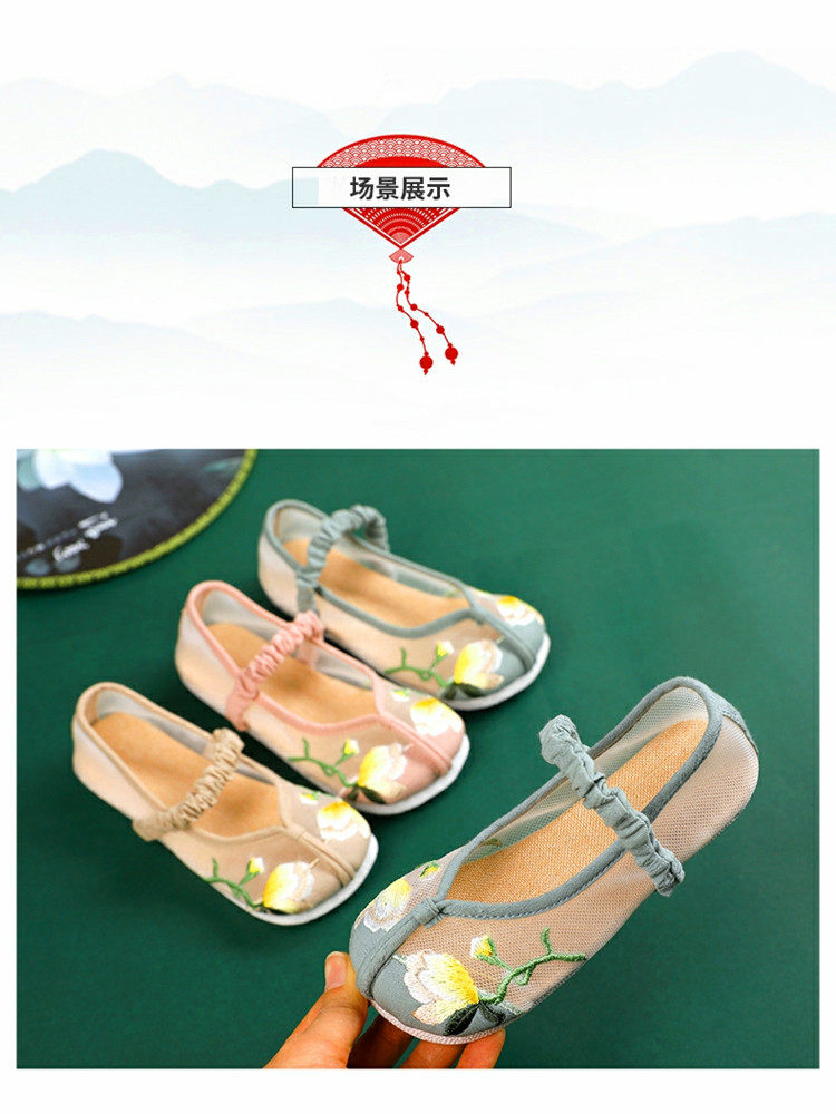 Ханьфу, детская летняя ретро обувь, сетчатые слипоны для школьников