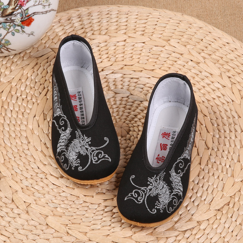 Старая Пекин Детская Ткань обувь мальчики черная выступление детская комната комната камера Юанку национальный стиль обувь весенняя и осенние туфли