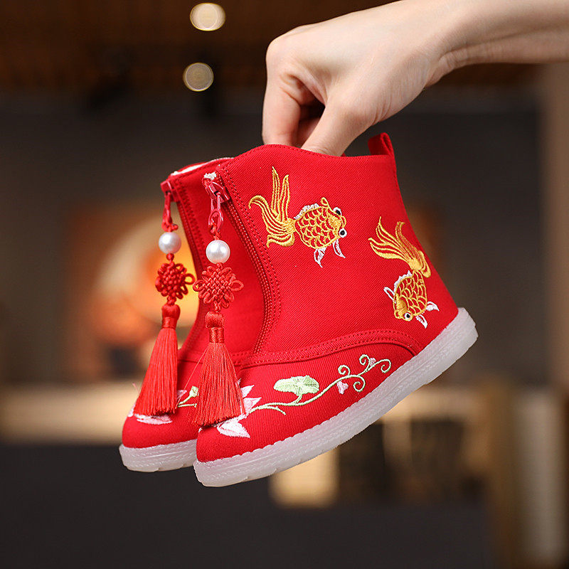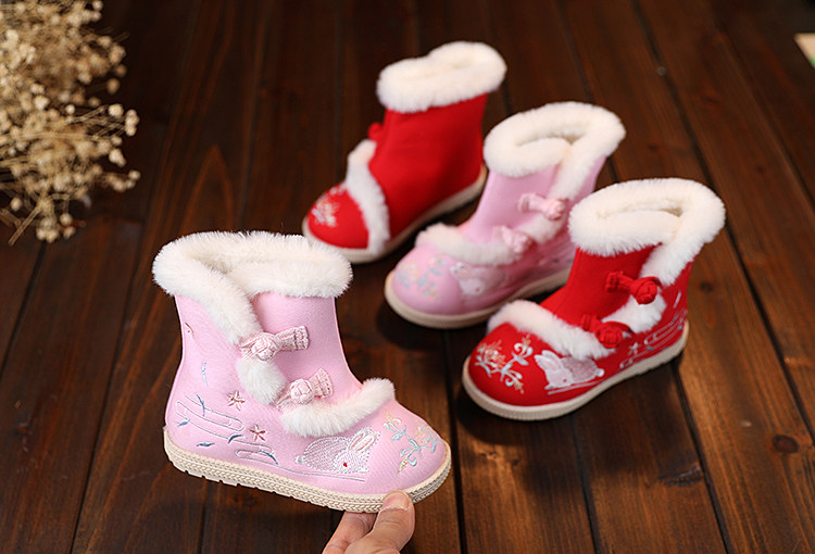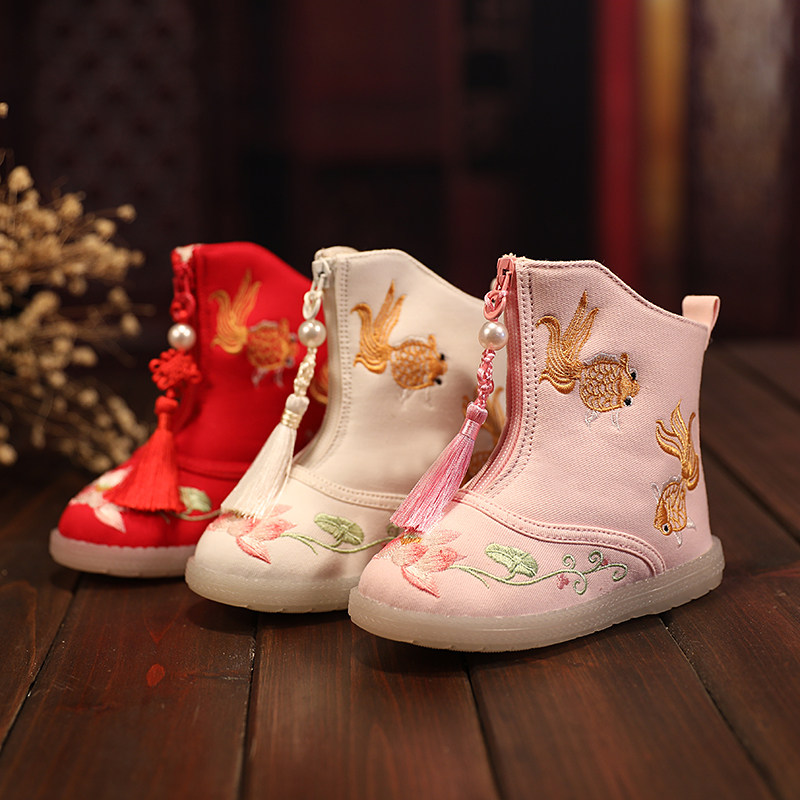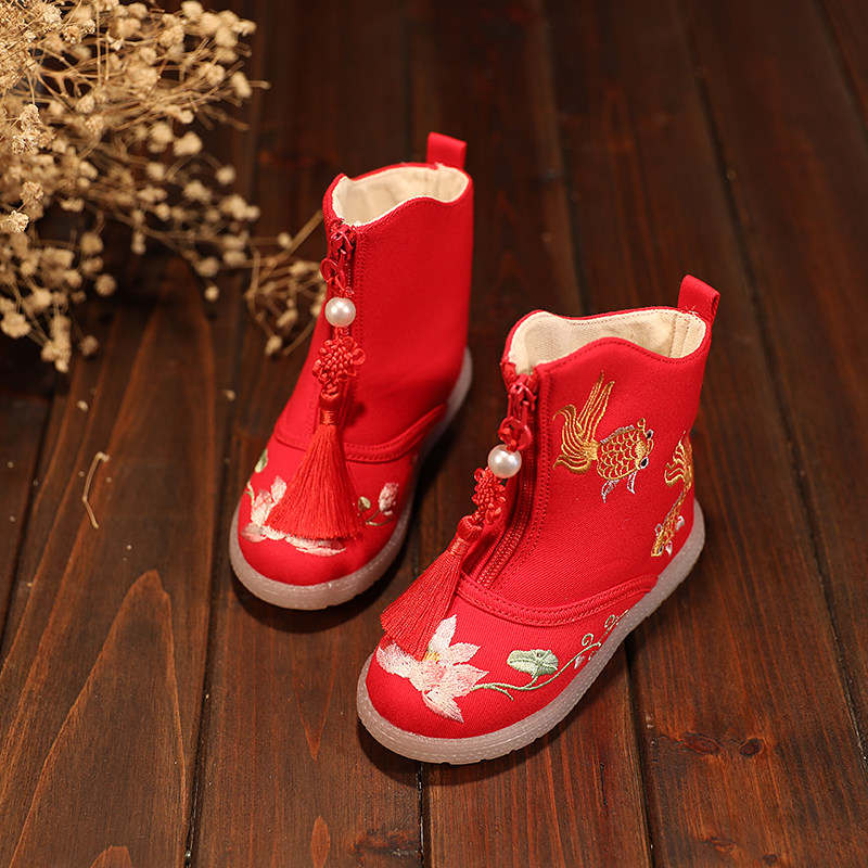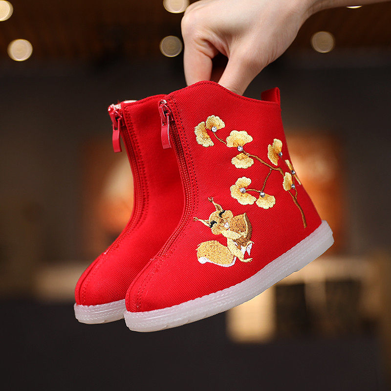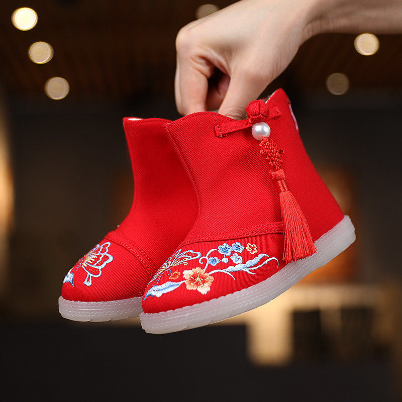 Hanfu Shoes Girl Emelcodery Shoes Winter 2020 Новая детская хлопчатобула