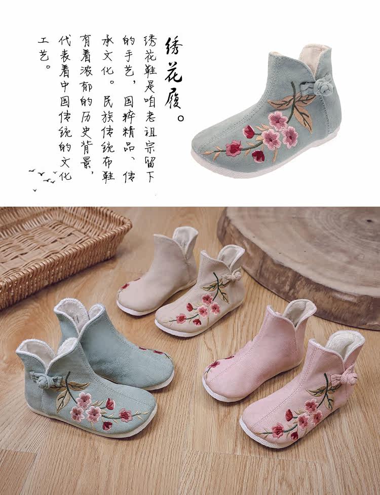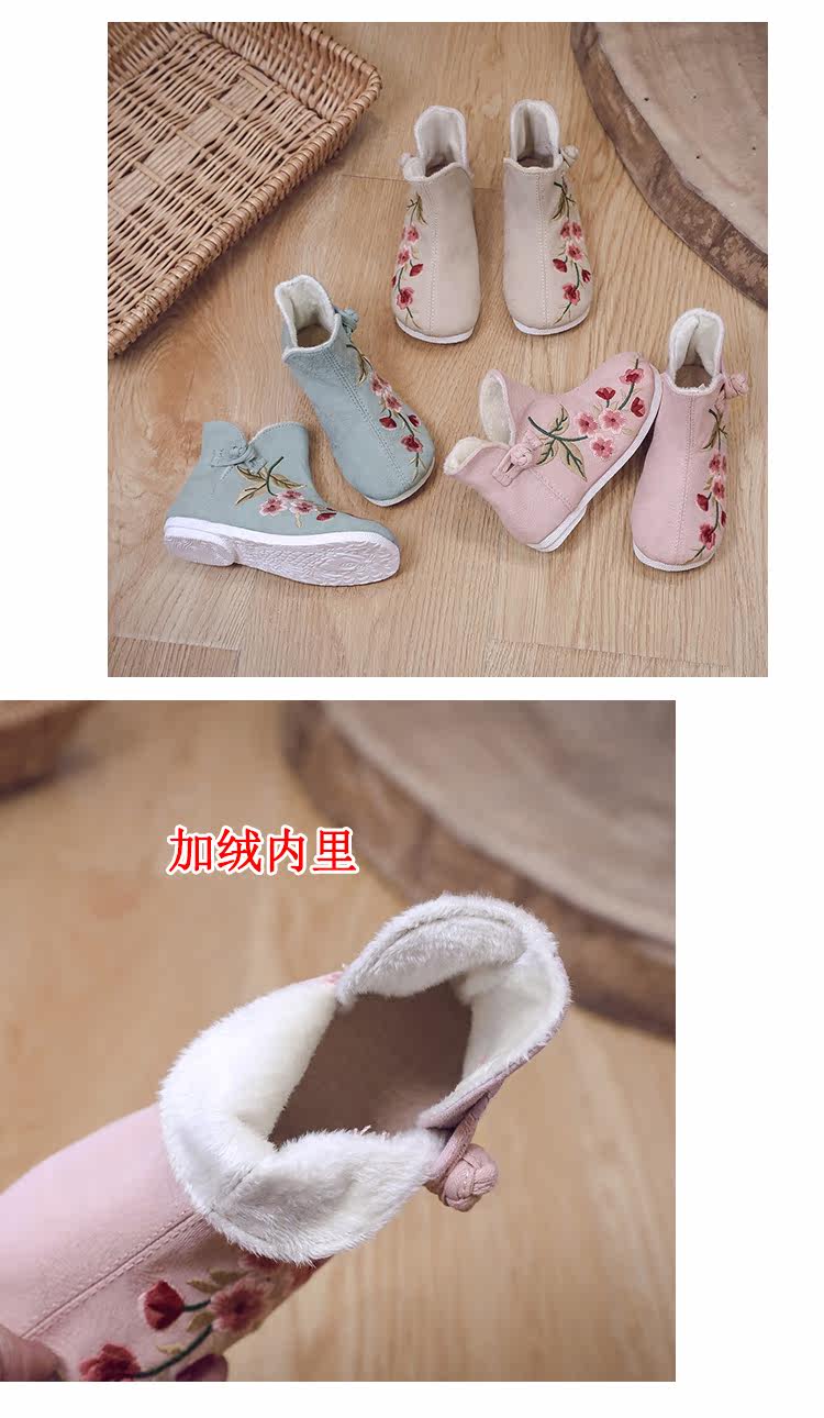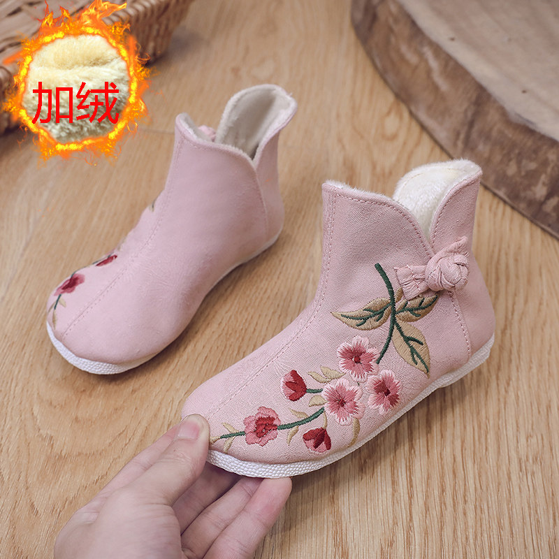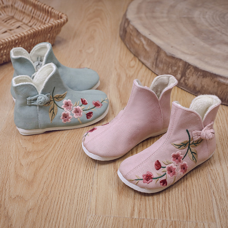 Ханьфу, флисовая этническая обувь, детские демисезонные удерживающие тепло короткие сапоги, этнический стиль