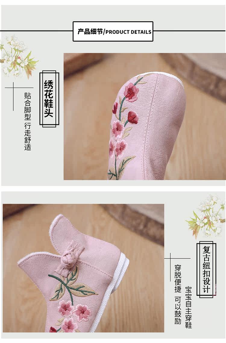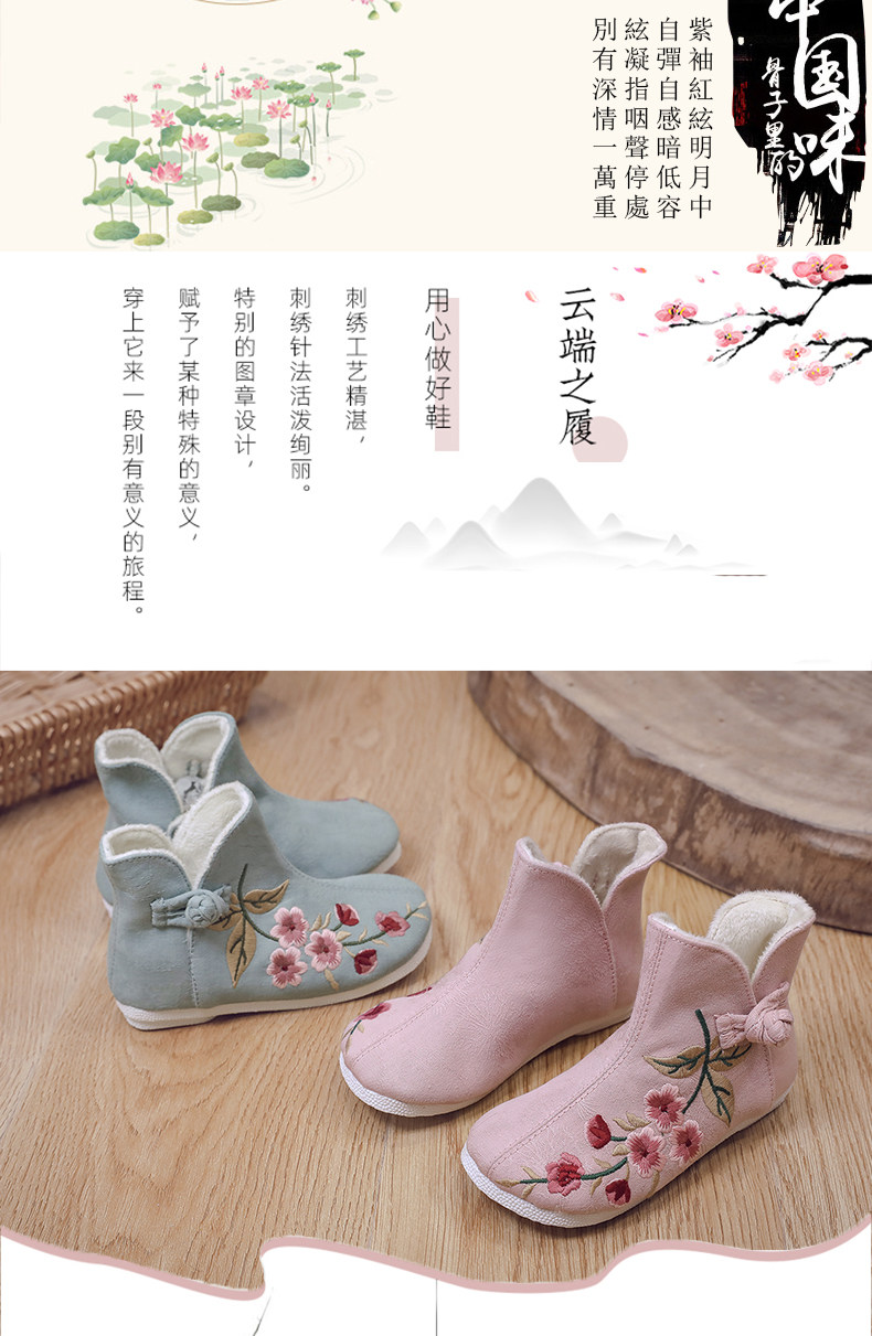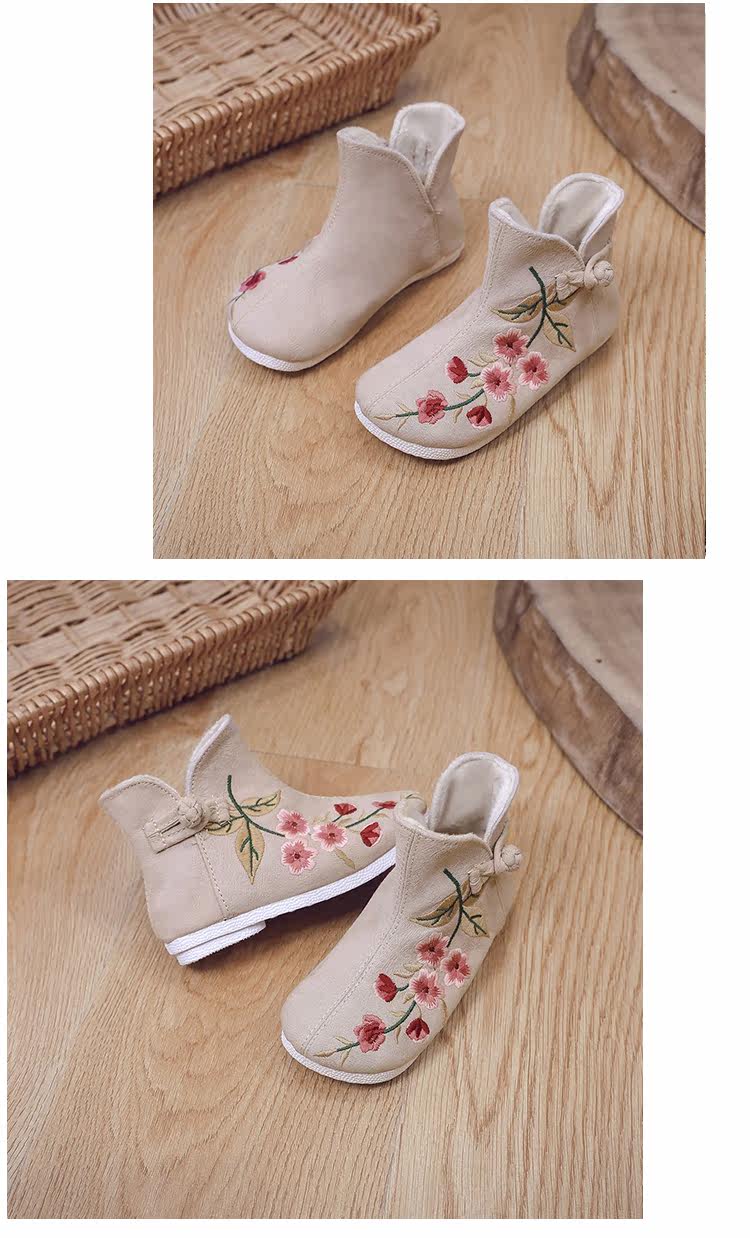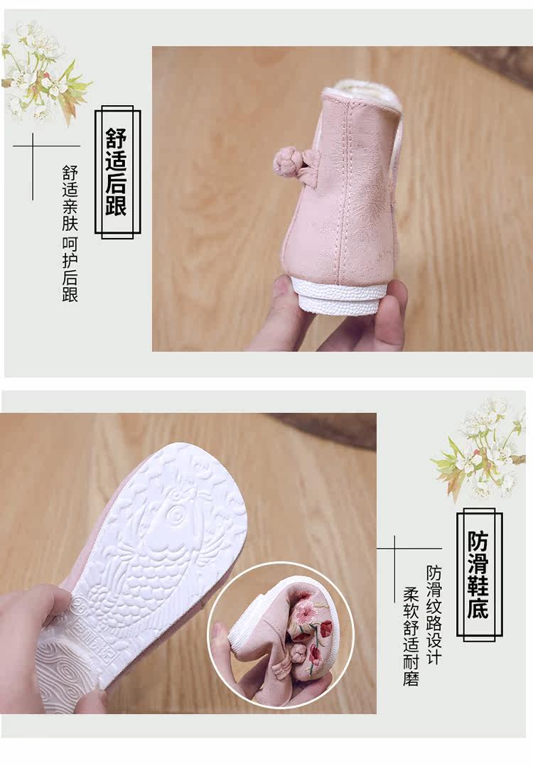 Ханьфу, флисовая этническая обувь, детские демисезонные удерживающие тепло короткие сапоги, этнический стиль