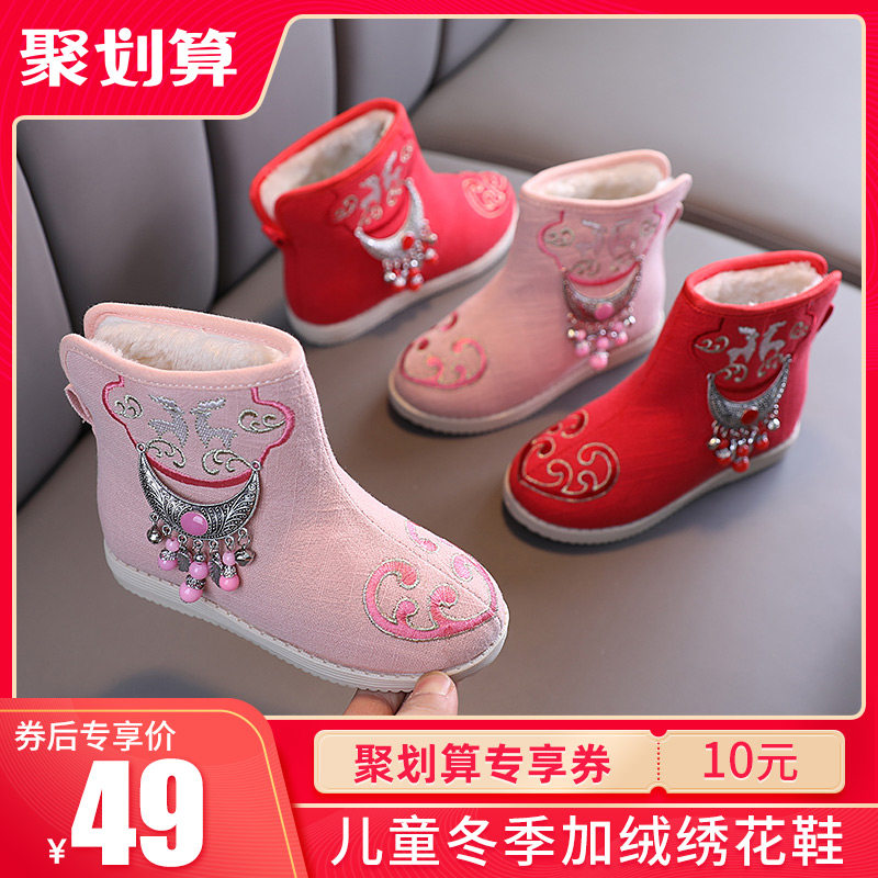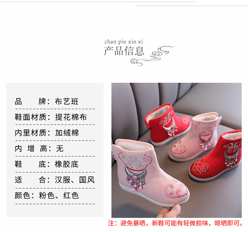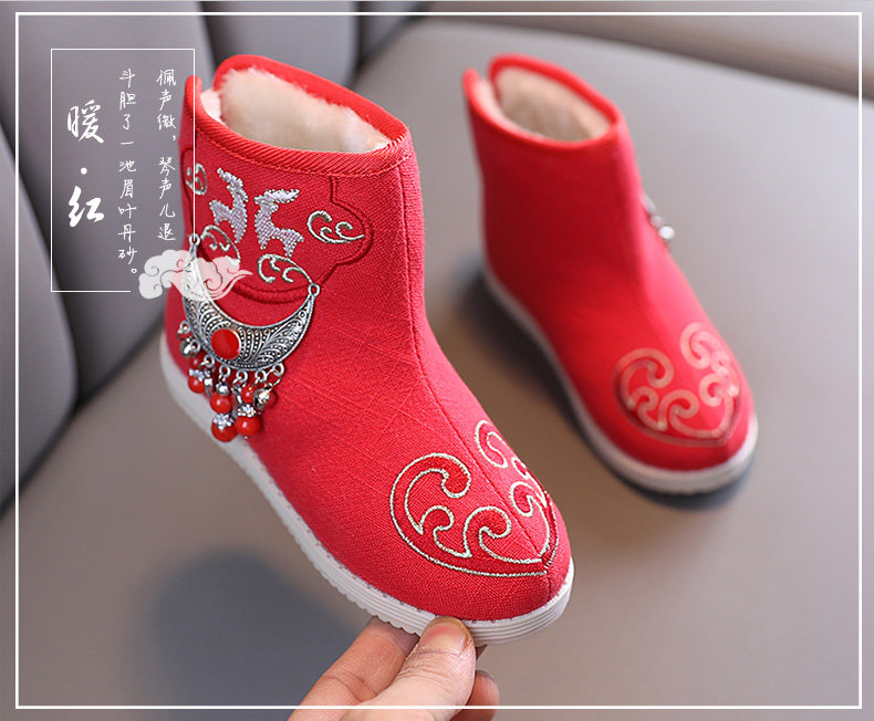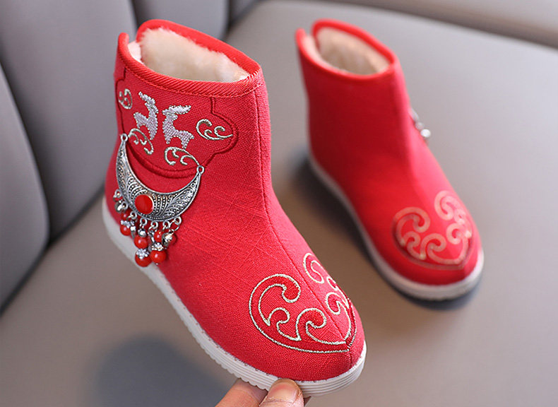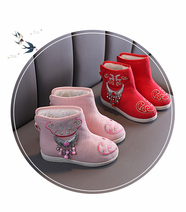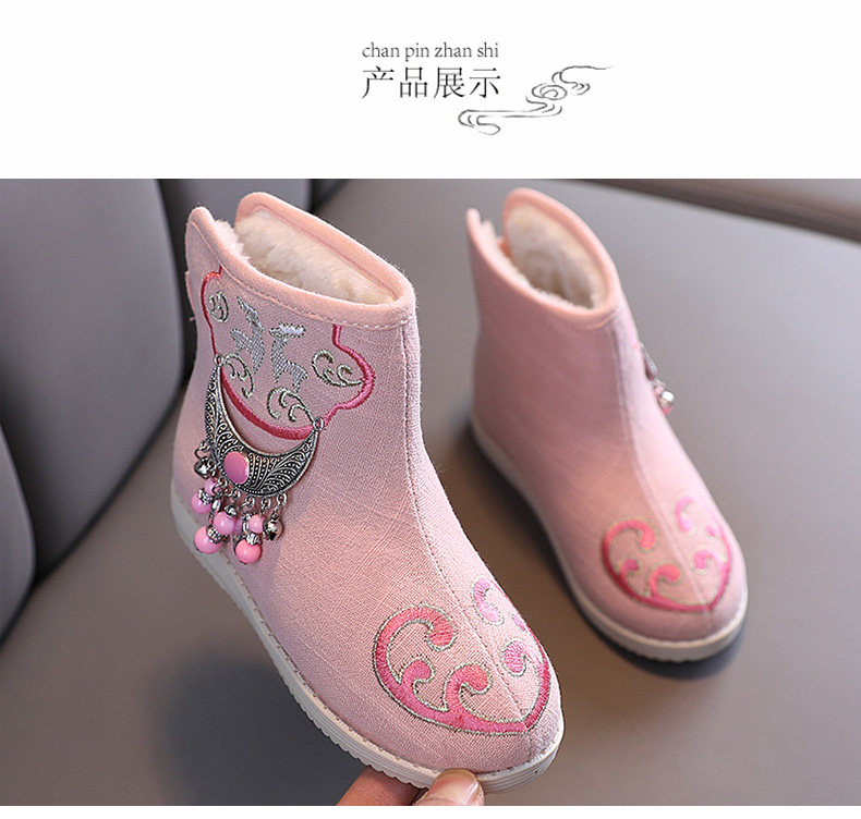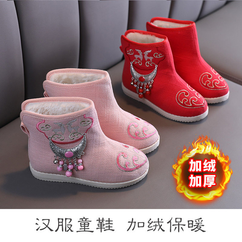 Ханьфу, флисовая обувь, детские зимние короткие сапоги