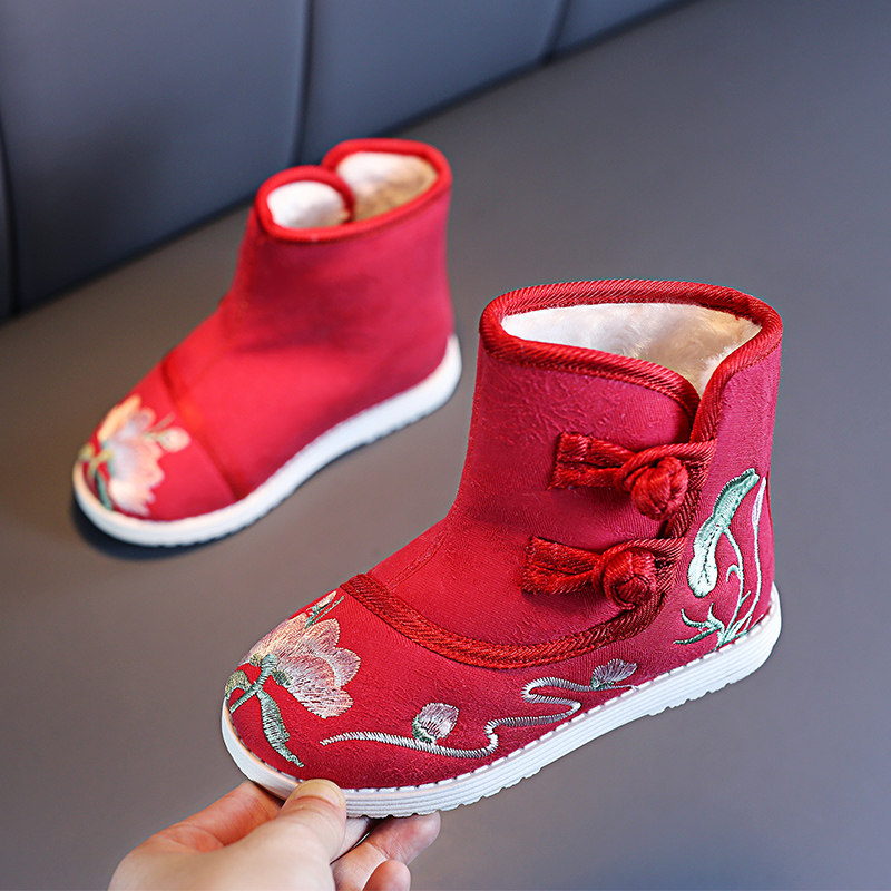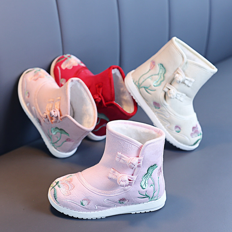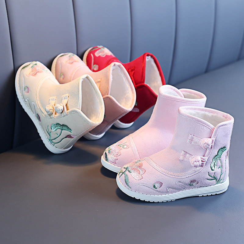 Сапоги, ханьфу, детская обувь, флисовые зимние слипоны, китайский стиль