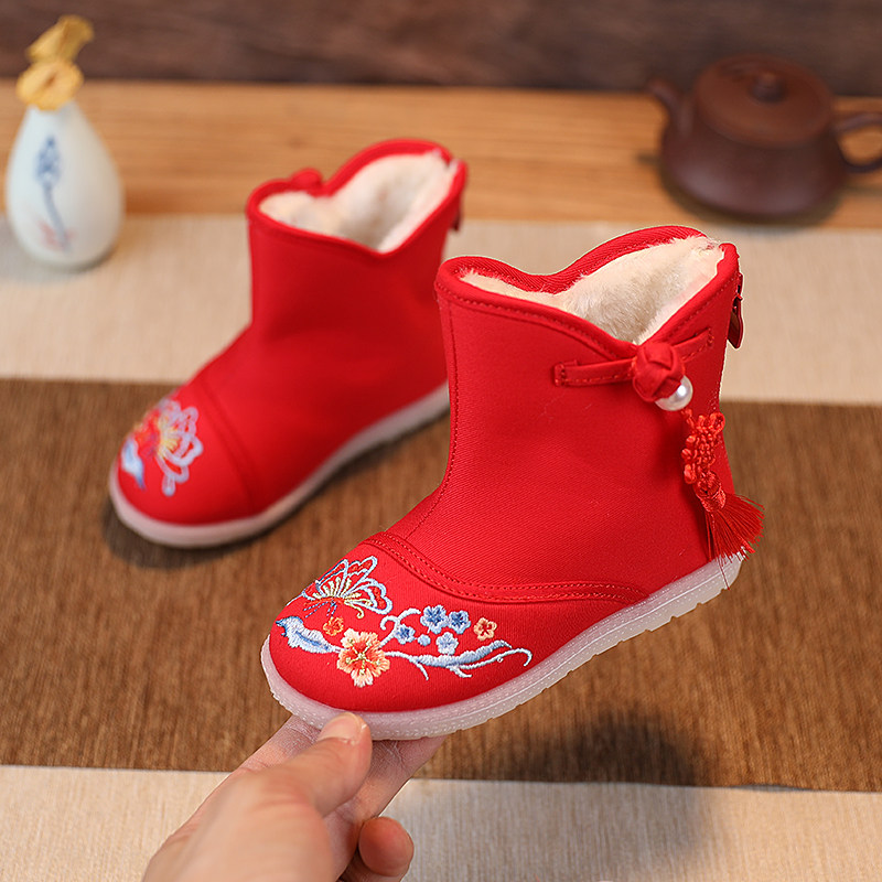 Ханьфу, обувь, детские флисовые ботинки, китайский стиль