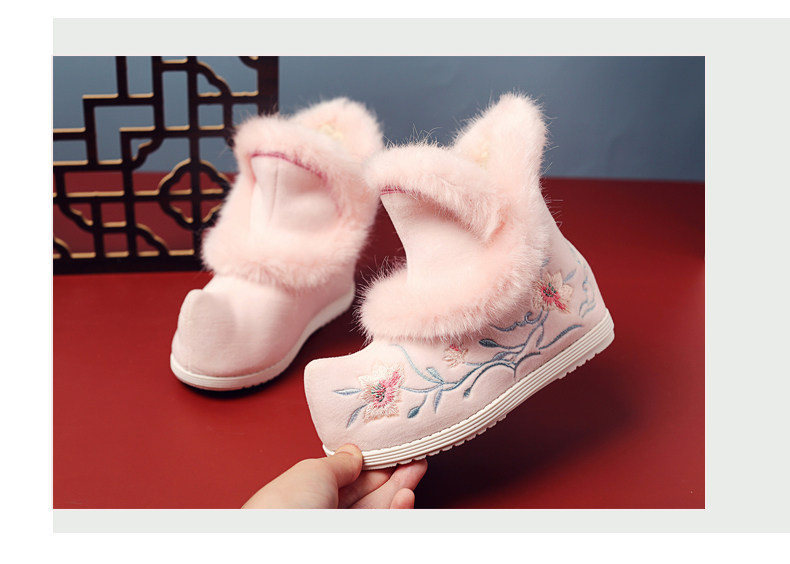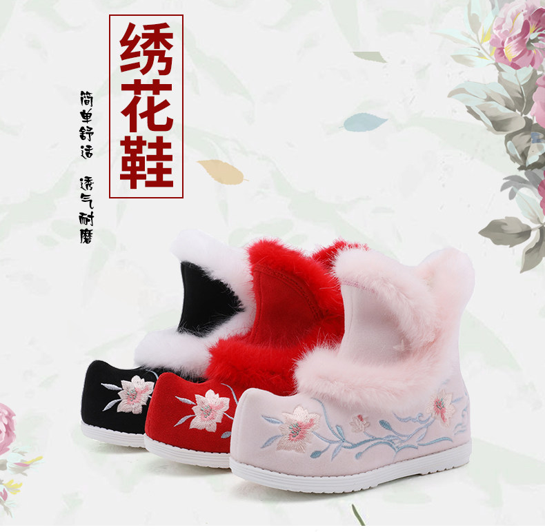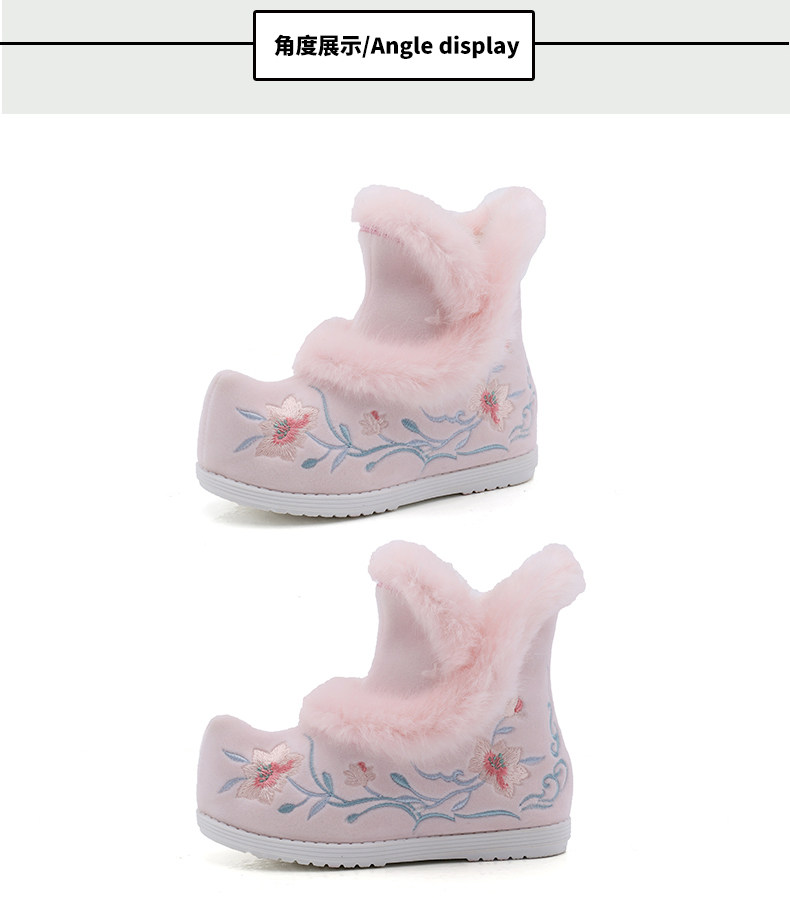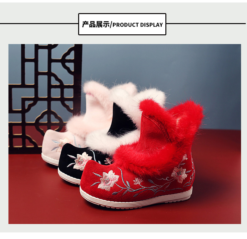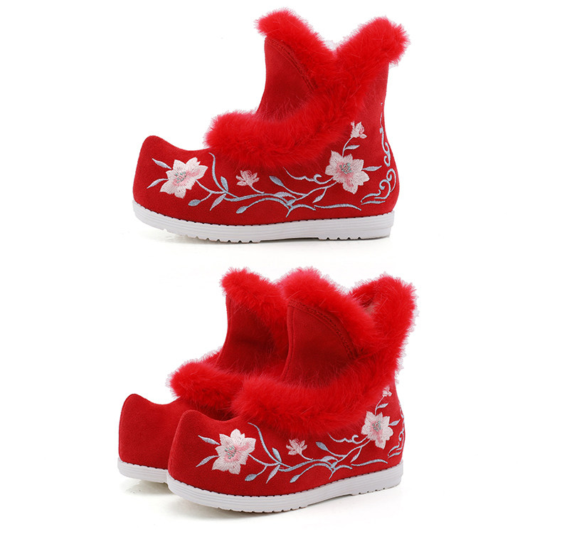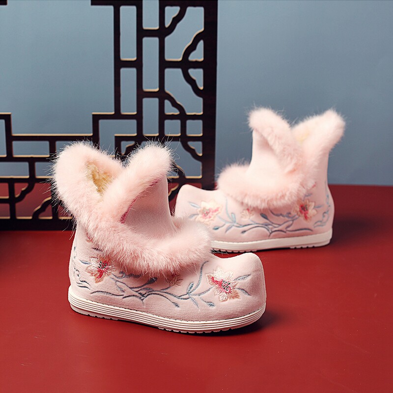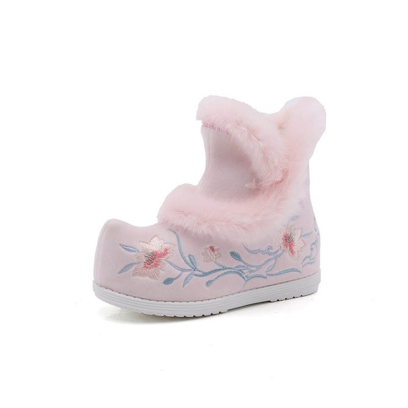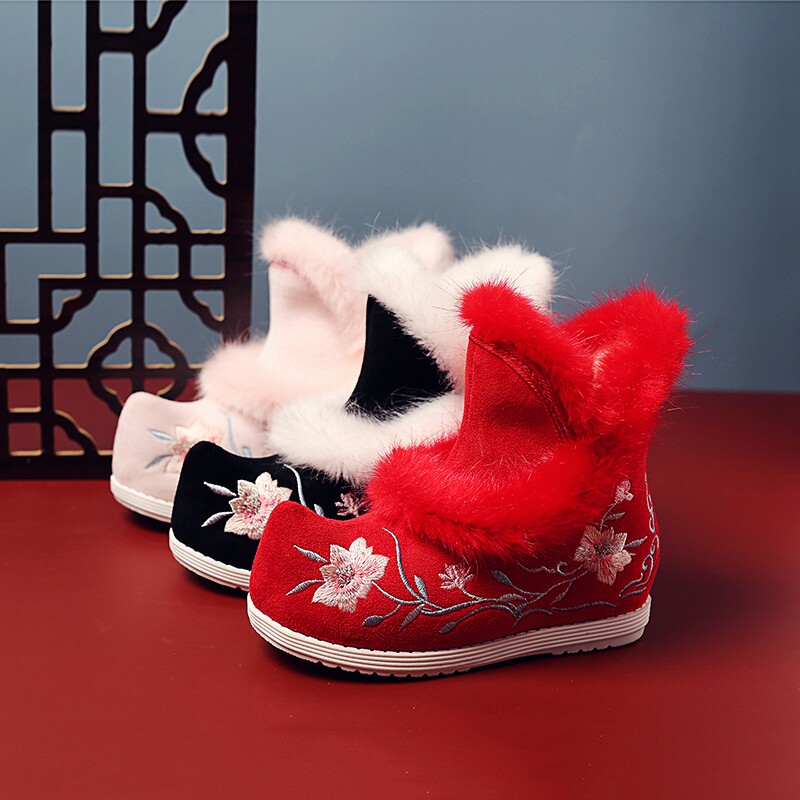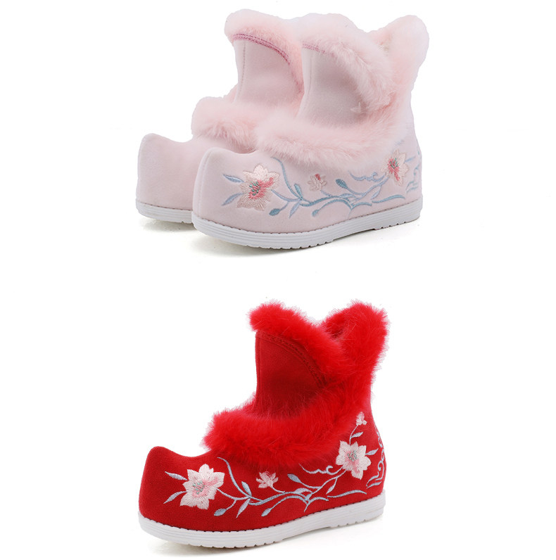 Удерживающие тепло флисовые этнические зимние детские короткие сапоги, ханьфу, этнический стиль