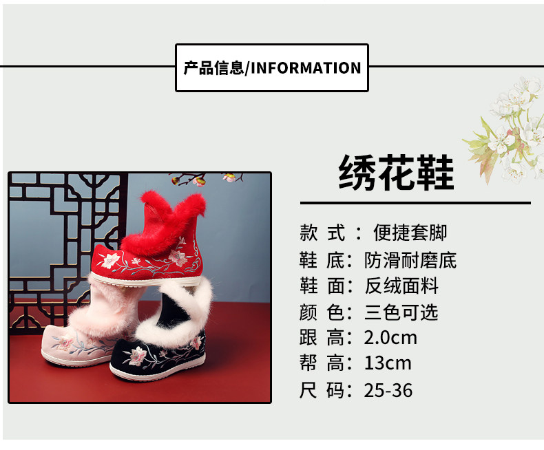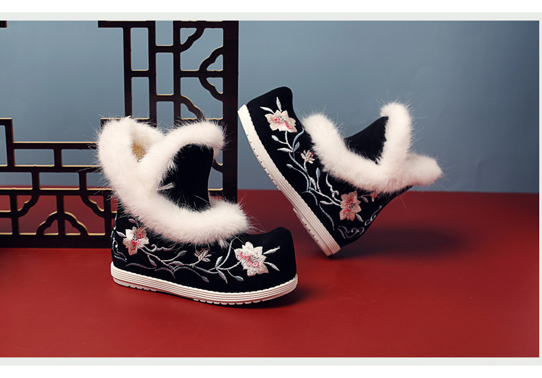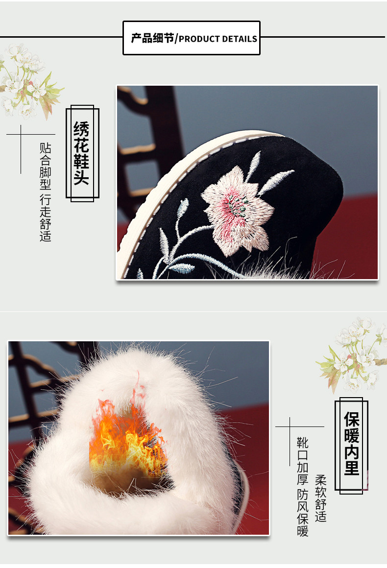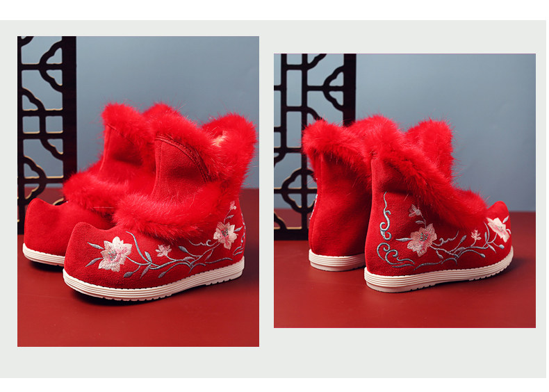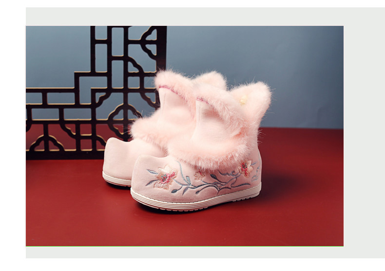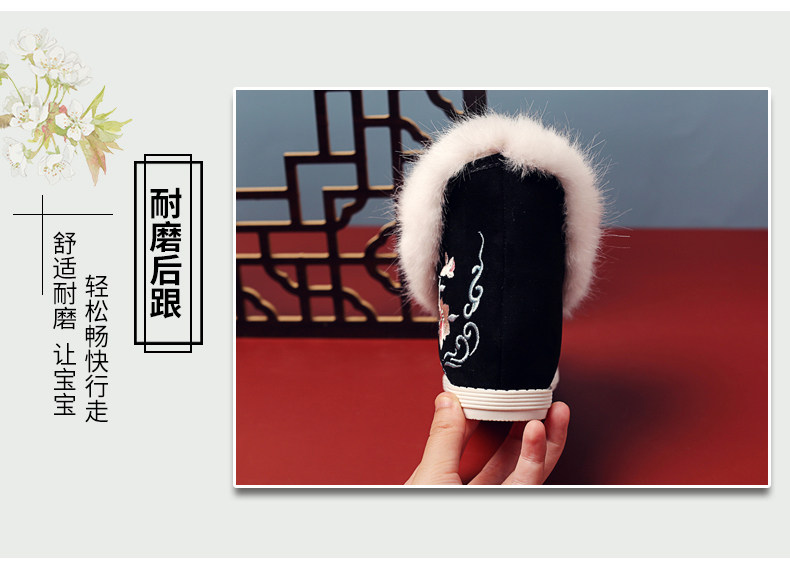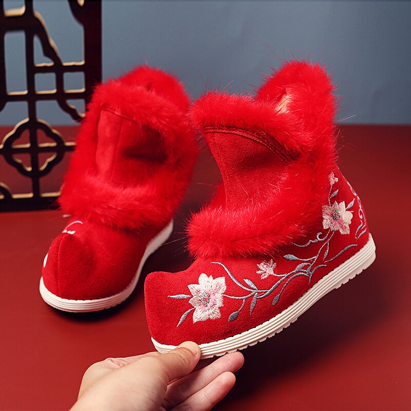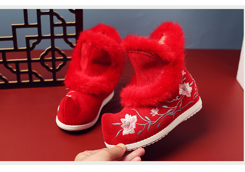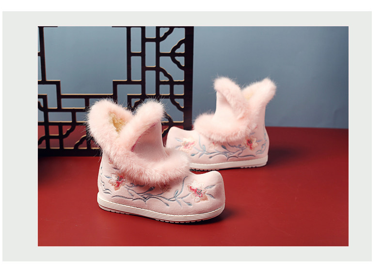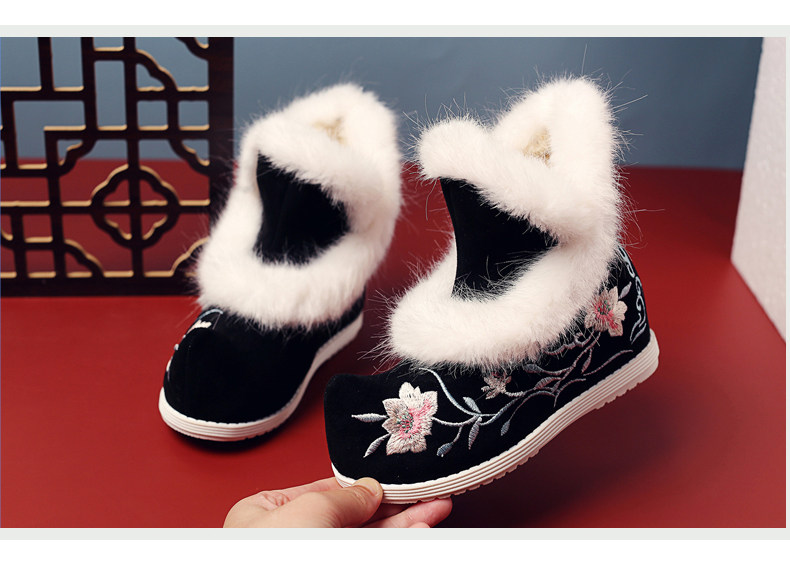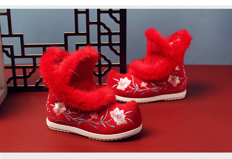 Удерживающие тепло флисовые этнические зимние детские короткие сапоги, ханьфу, этнический стиль