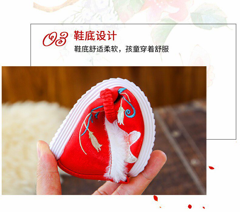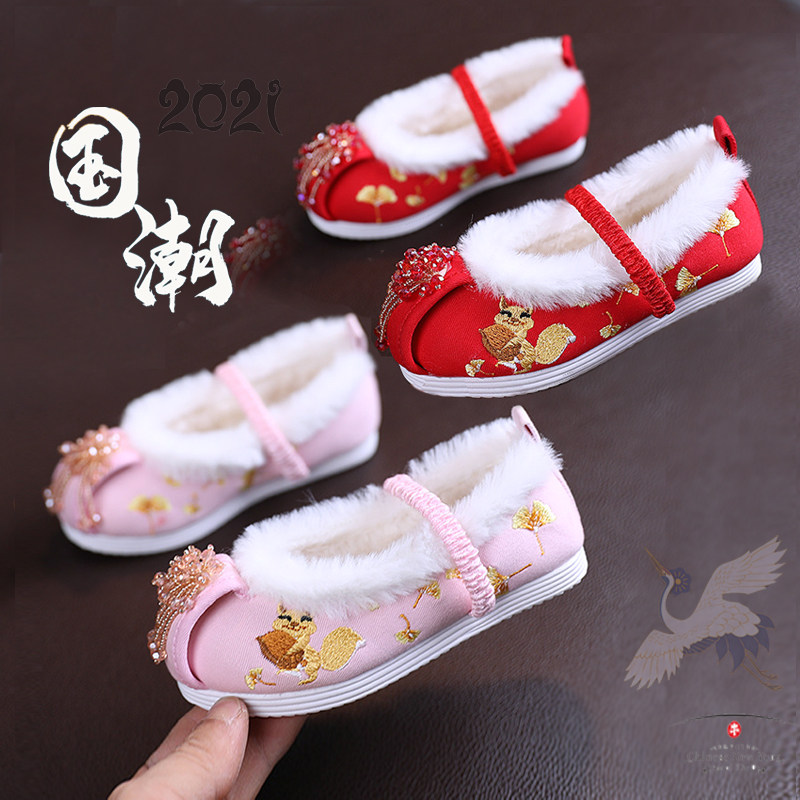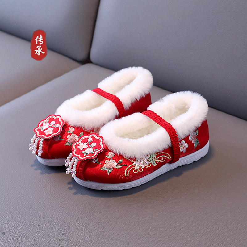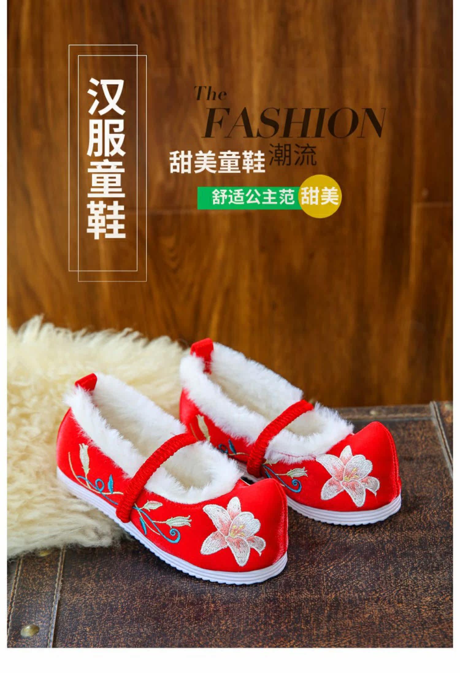 Детское зимнее ханьфу, обувь, детские флисовые слипоны, китайский стиль