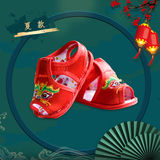 Красные сандалии подходит для мужчин и женщин для девочек, летняя детская обувь, китайский стиль, с вышивкой, мягкая подошва