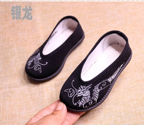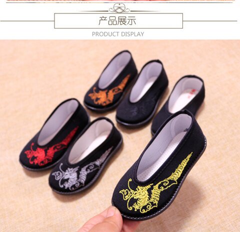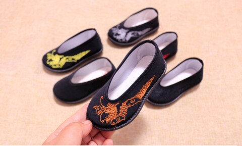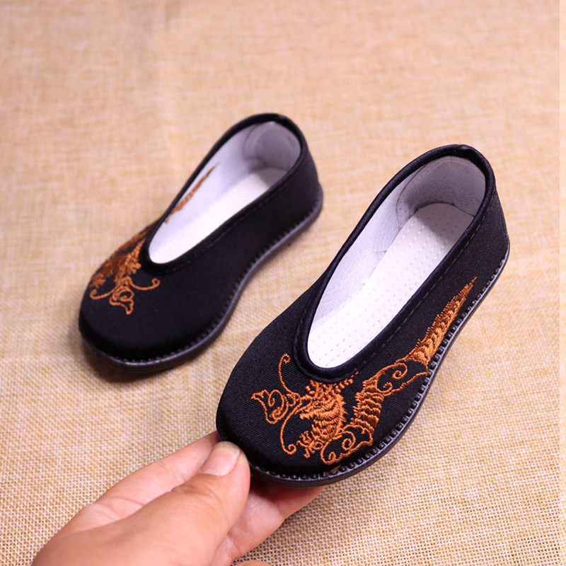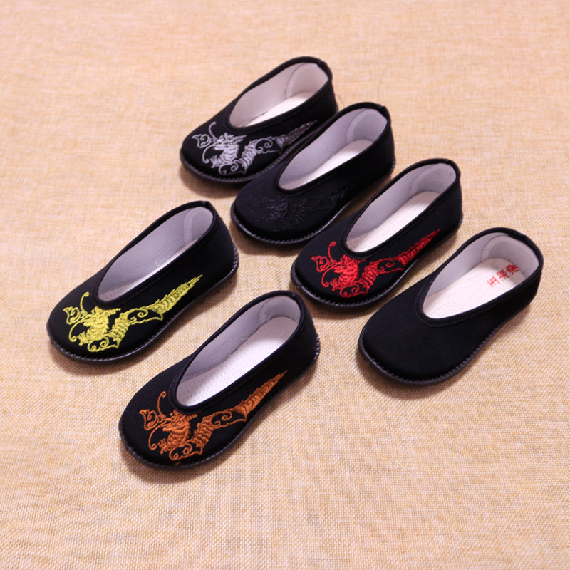 Детская обувь для мальчиков, черное ханьфу, с вышивкой