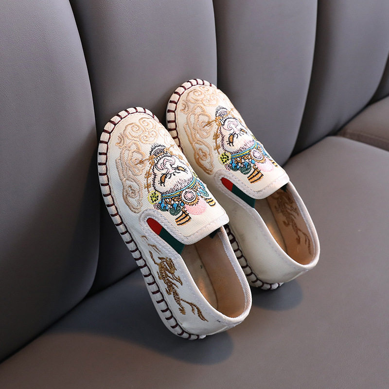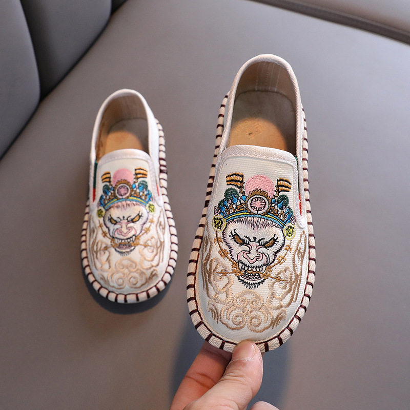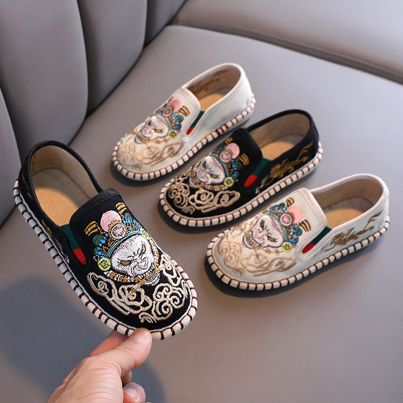 Старая Пекин Детская Ткань Ткань обувь этнический стиль сладкий и дышащий холст цвет кожи детский пятно бренд бренда повседневная одиночная обувь детская обувь