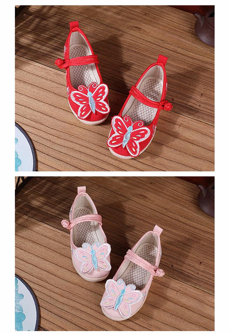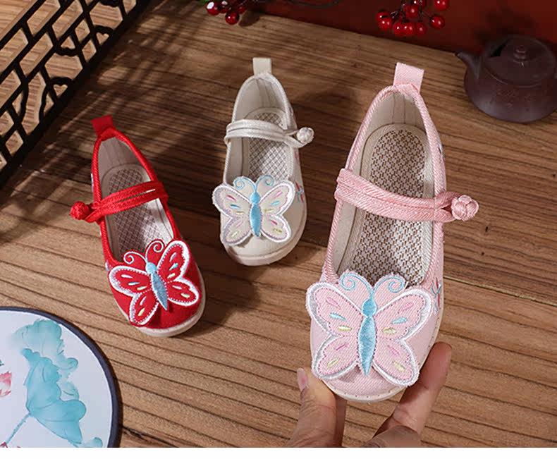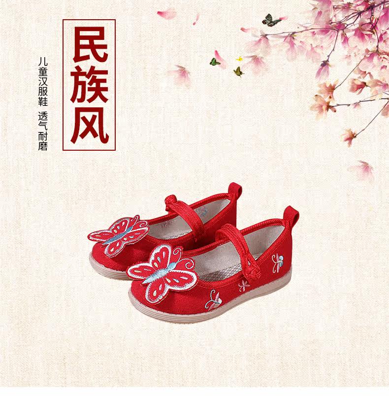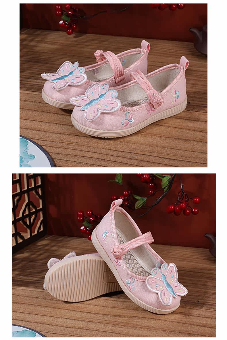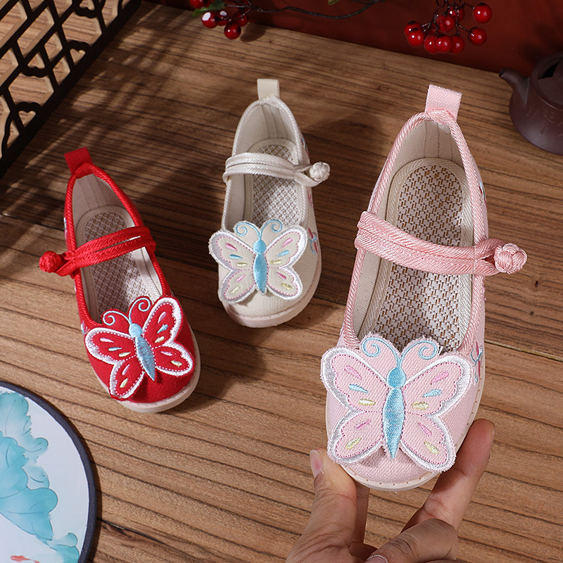 Ретро этническая детская обувь с бабочкой, ханьфу, этнический стиль, осенняя