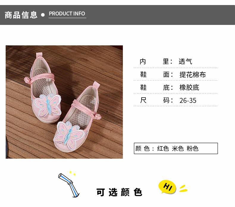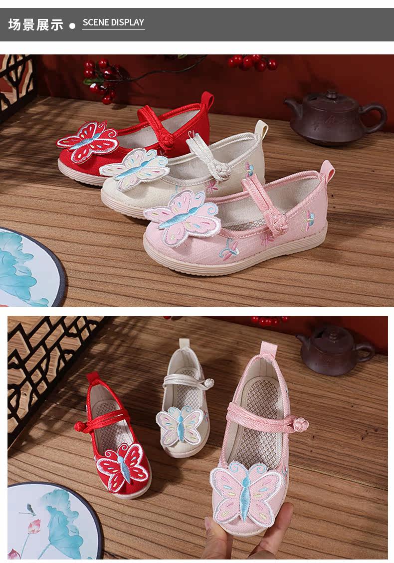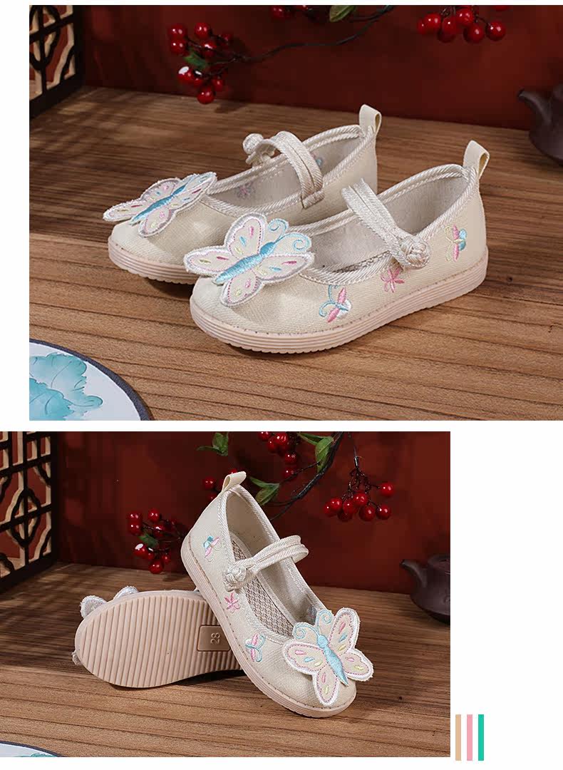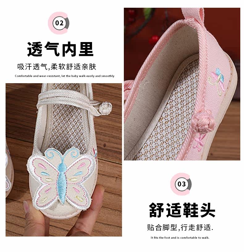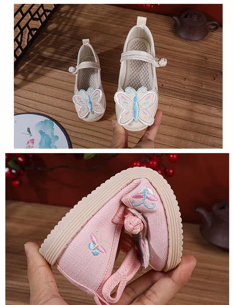 Ретро этническая детская обувь с бабочкой, ханьфу, этнический стиль, осенняя