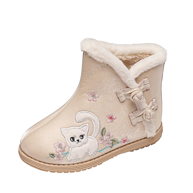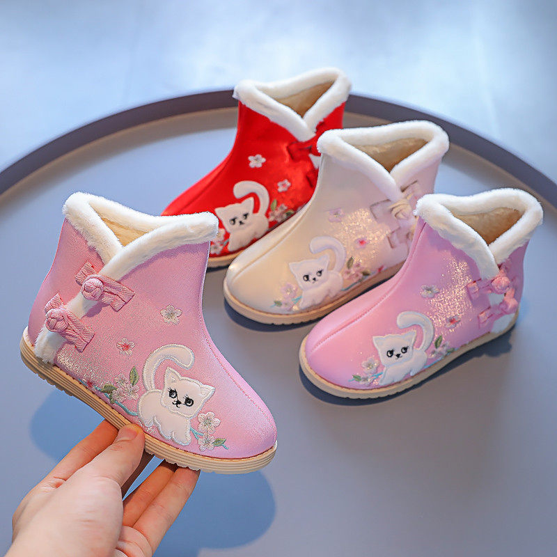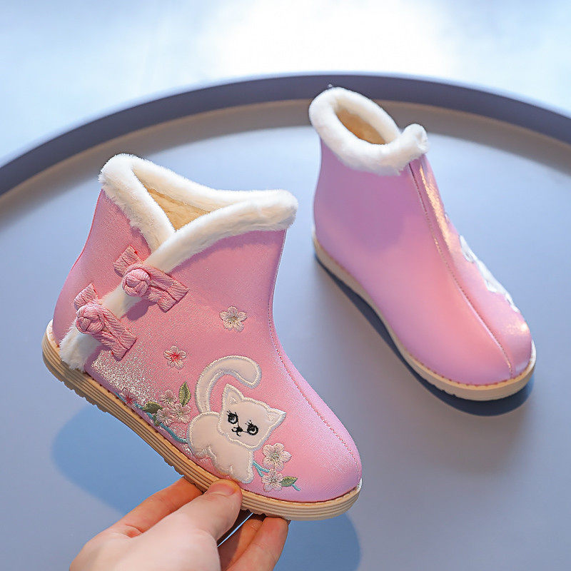 Зимнее детское ханьфу, флисовые ботинки, короткие сапоги, 2021 года, китайский стиль