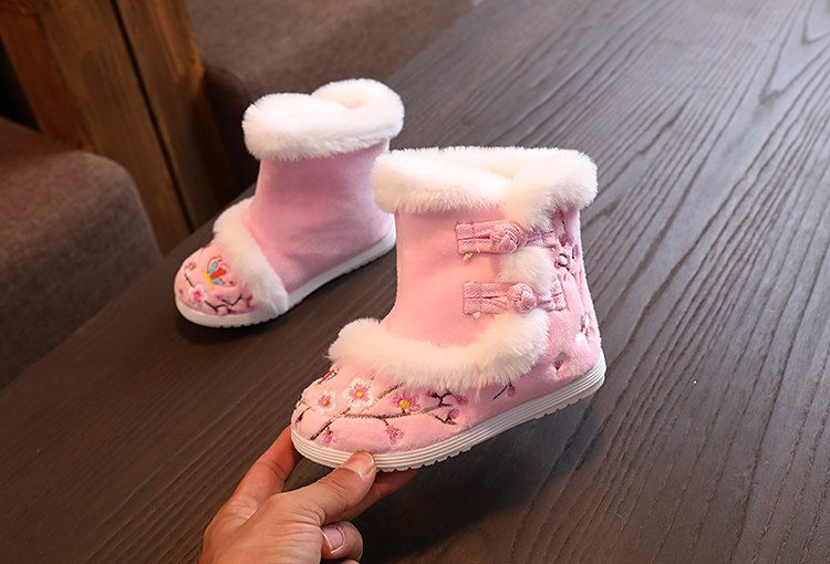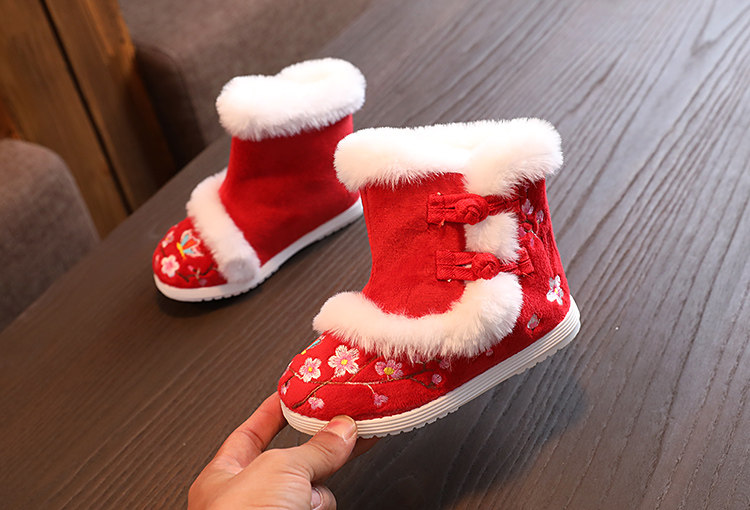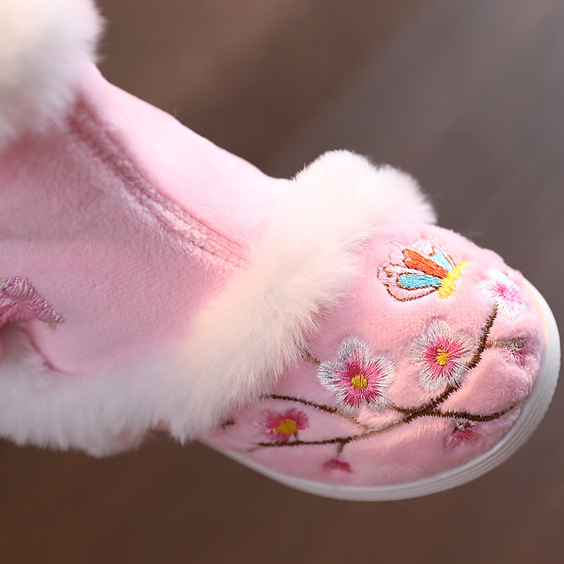 Зимнее утепленное ханьфу, детская удерживающая тепло обувь, бархатные сапоги, китайский стиль