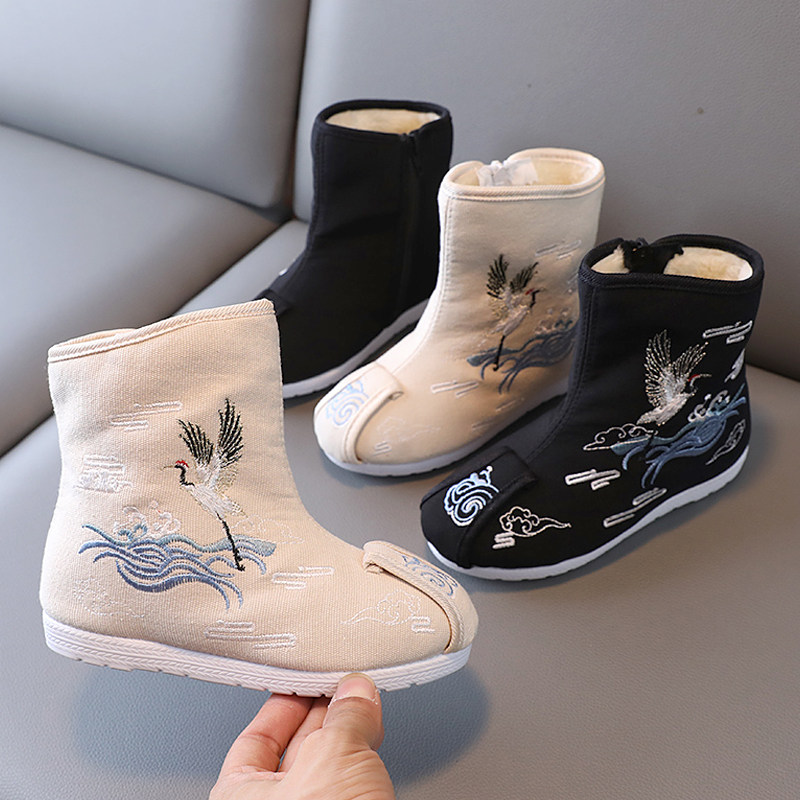 Детское зимнее ханьфу, ботинки, зимние удерживающие тепло сапоги для мальчиков