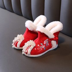Зимнее детское флисовое ханьфу, утепленная красная обувь, 2022, китайский стиль