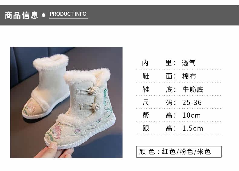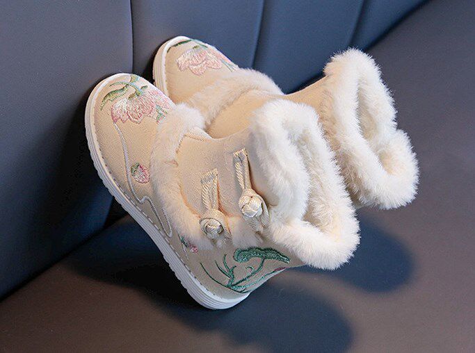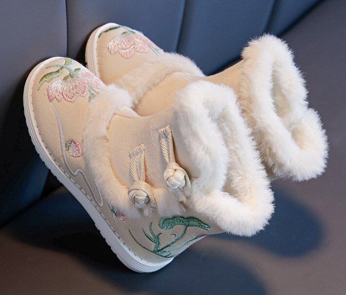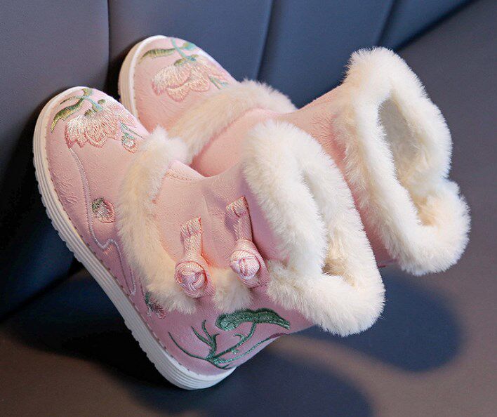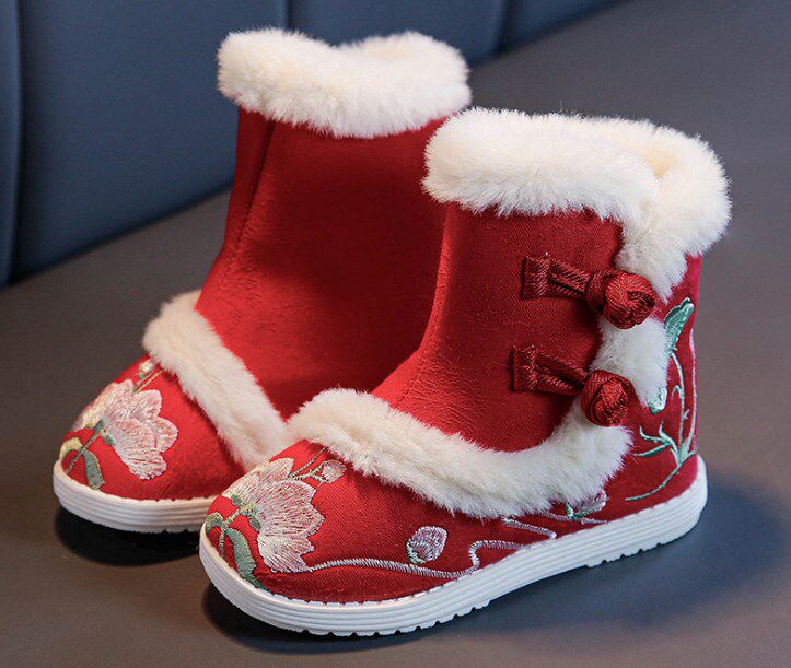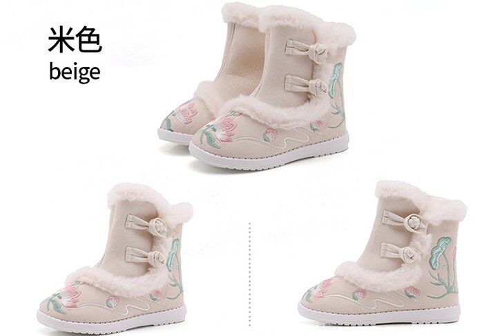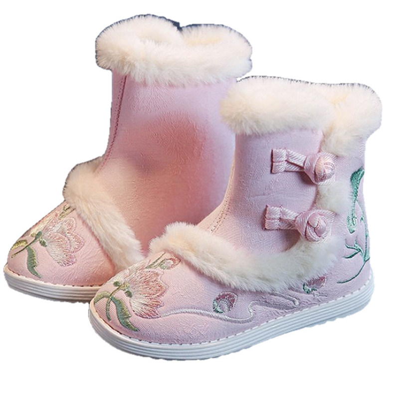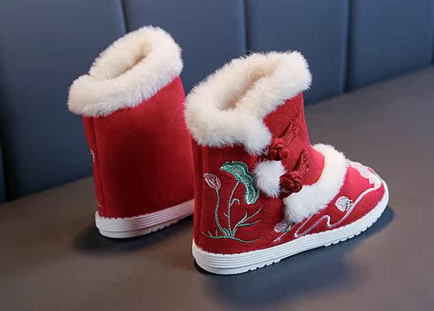 Ханьфу, зимние детские флисовые ботинки, китайский стиль, увеличенная толщина