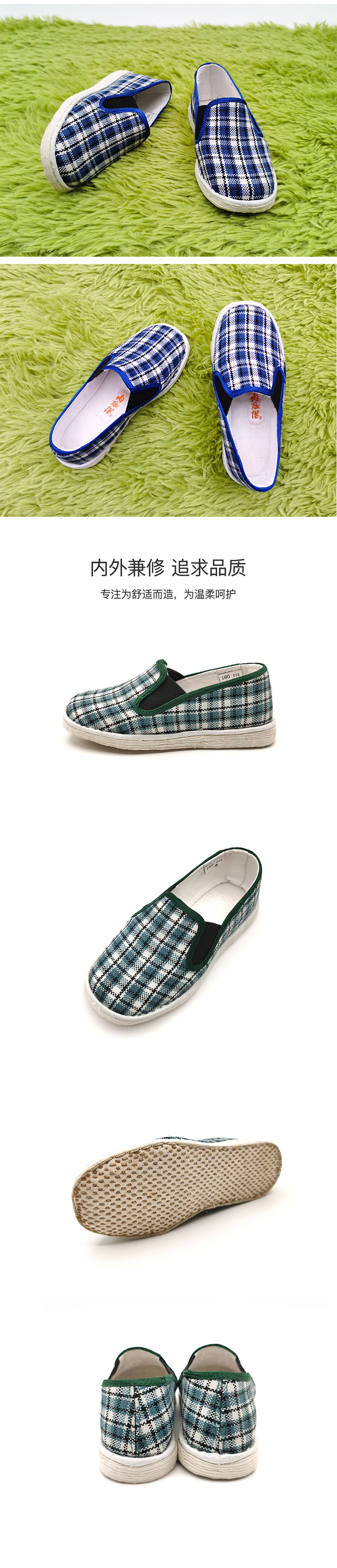 内联升 Детская обувь. Проверенные временем тканевые туфли в стиле Пекин, ручная работа, многослойные тканевые туфли, туфли с язычком в клетку, 5425C