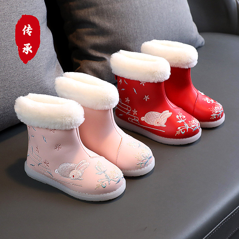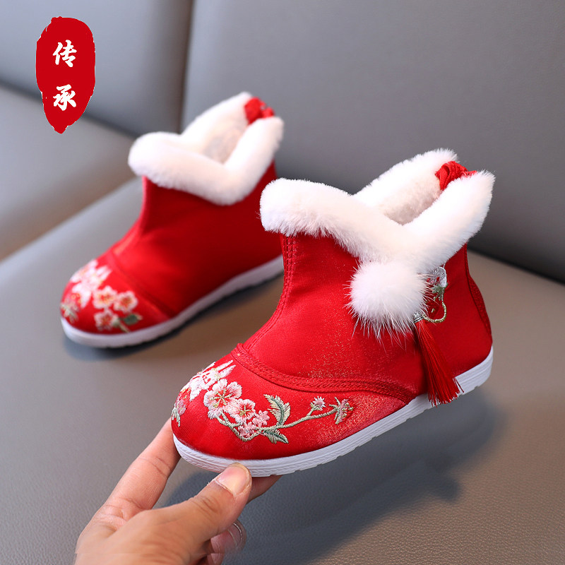 Слипоны, детское ханьфу, зимняя обувь, детские флисовые сапоги