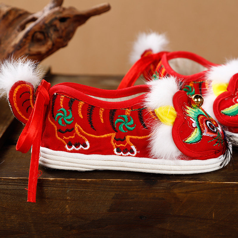 Обувь с головой тигра, детская обувь ручной работы с тигром, детская обувь в традиционном этническом стиле, обувь Hanfu, детская обувь с царапинами Zhou, обувь с тигром