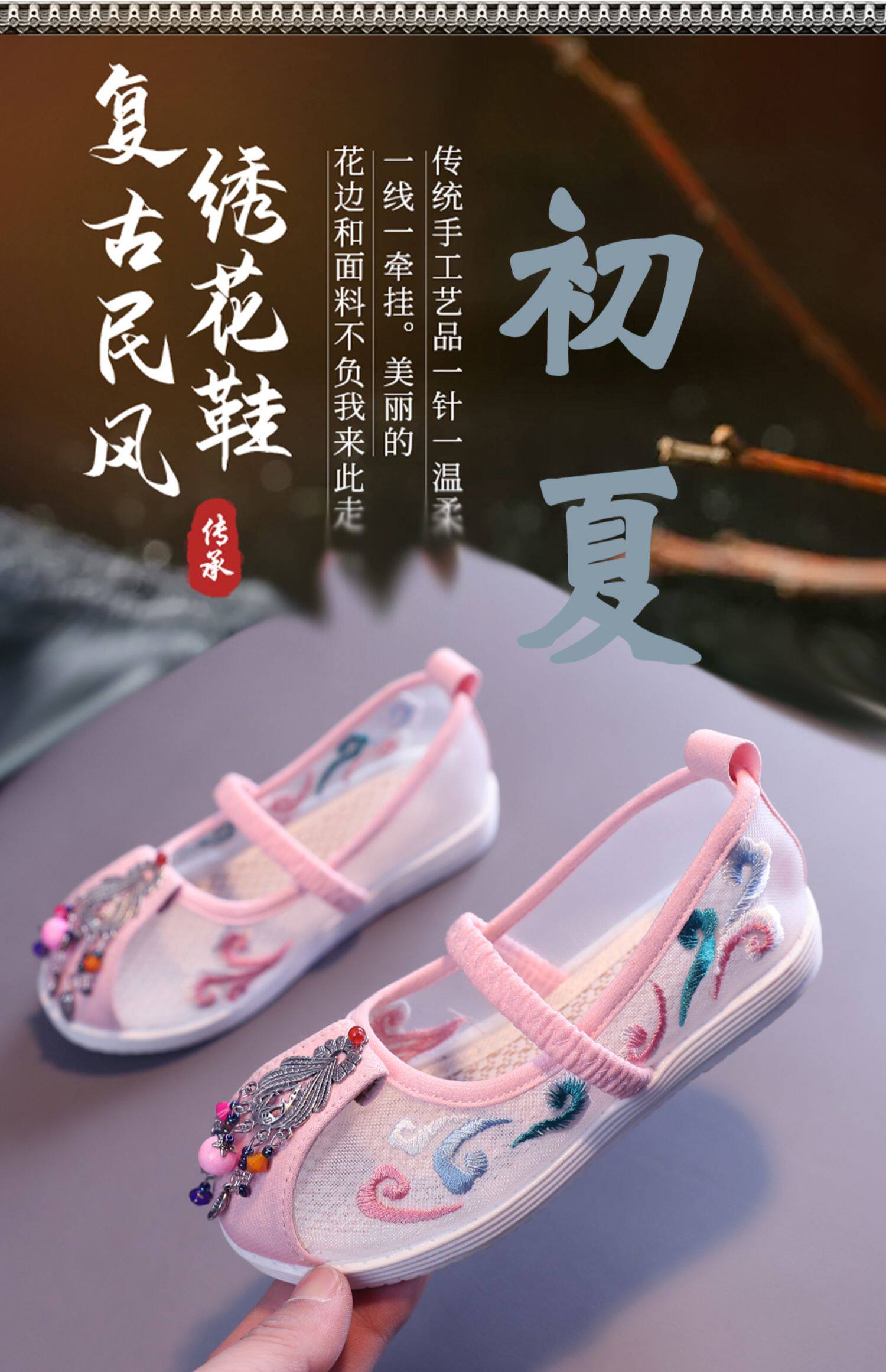 Детское ханьфу, обувь, летние этнические сандалии для принцессы, этнический стиль