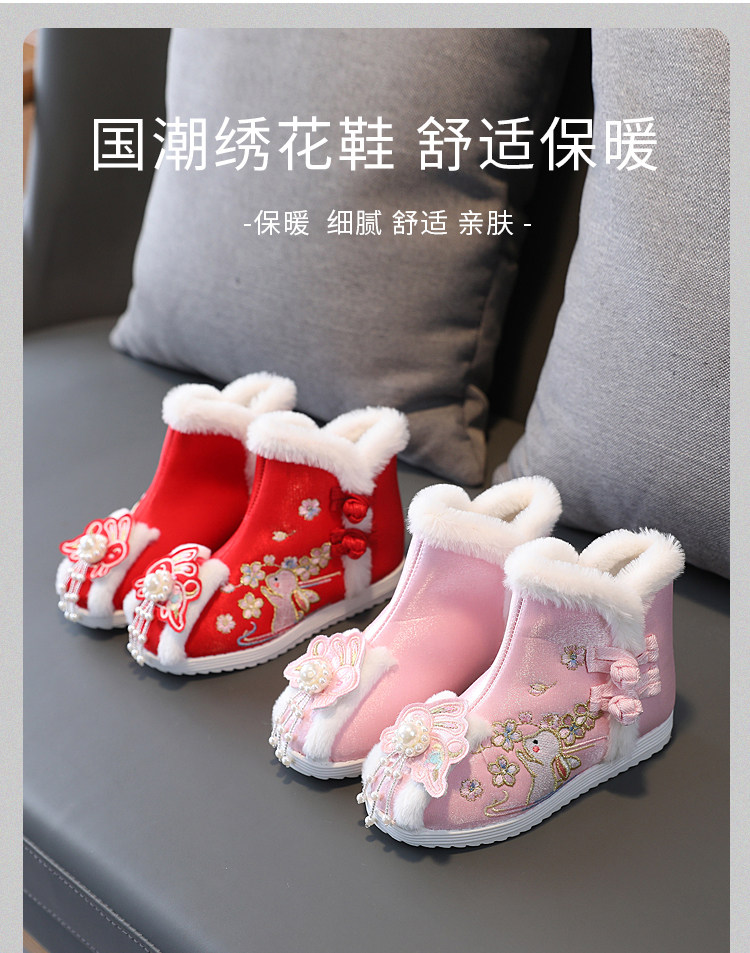 Зимнее ханьфу, детская обувь, флисовые короткие сапоги, китайский стиль
