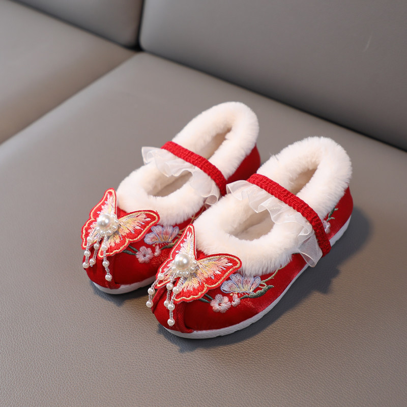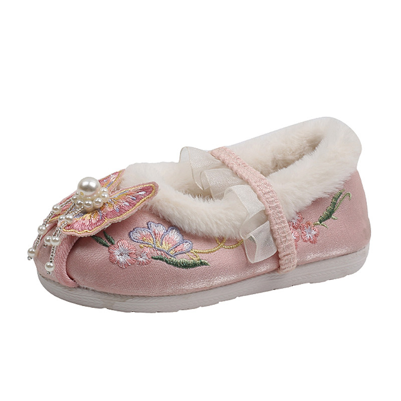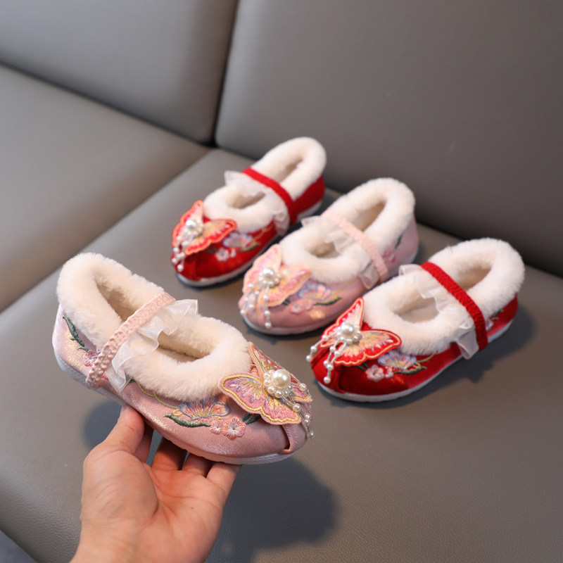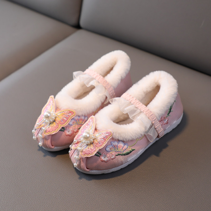 Зимняя детская флисовая обувь для девочек, ханьфу, китайский стиль