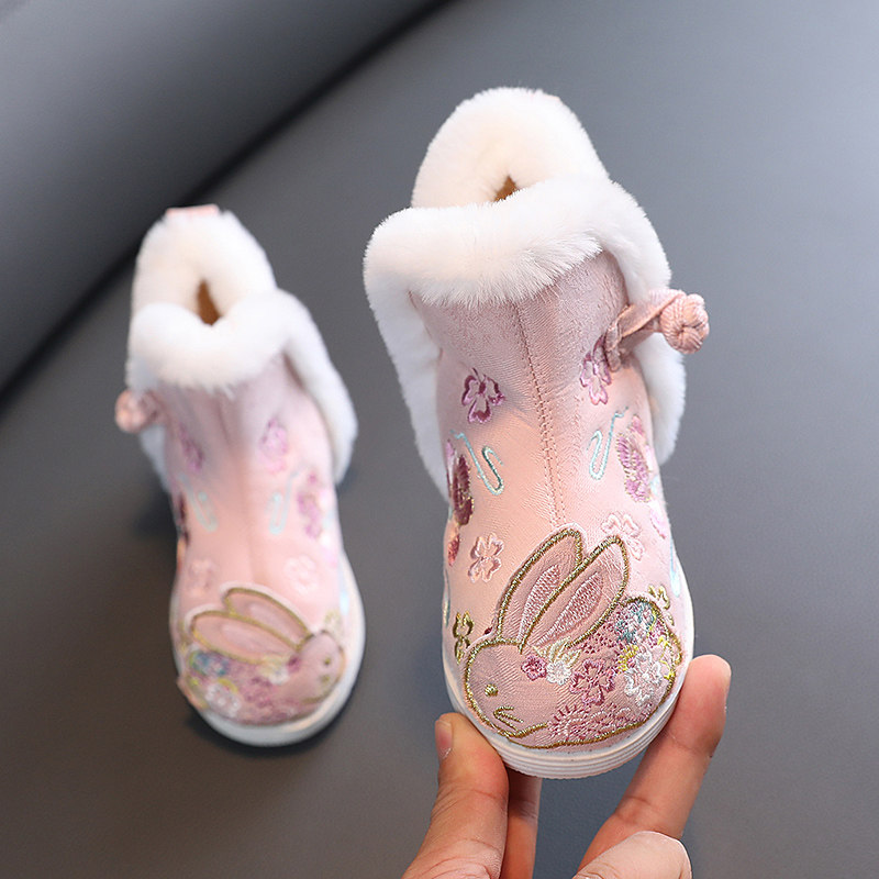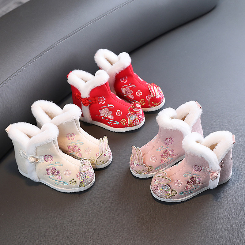 Флисовые зимние сапоги, ханьфу, ботинки, детская обувь, китайский стиль