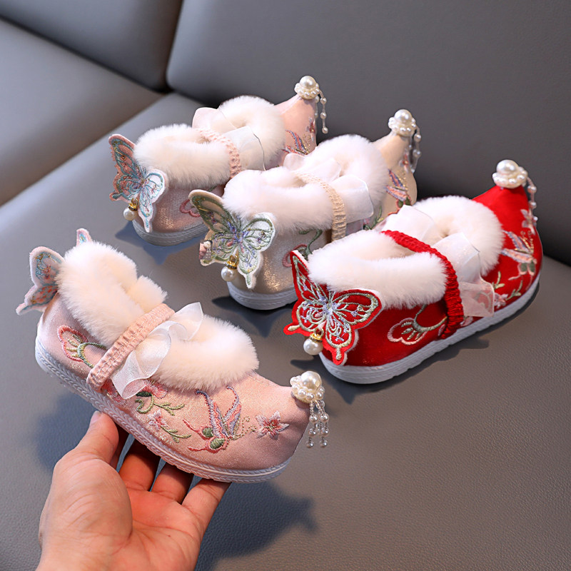 Детские слипоны, ханьфу, зимняя детская флисовая обувь, китайский стиль