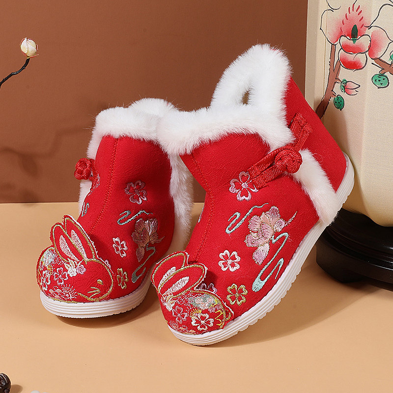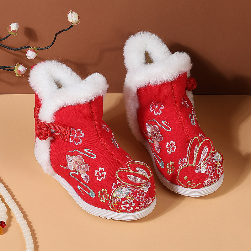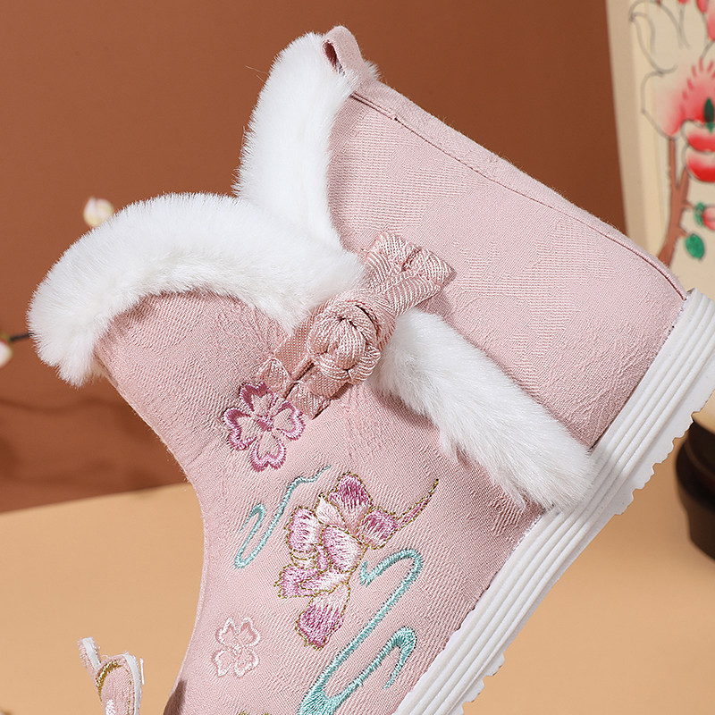 Ханьфу, зимняя детская флисовая обувь, нескользящие сапоги, китайский стиль, мягкая подошва