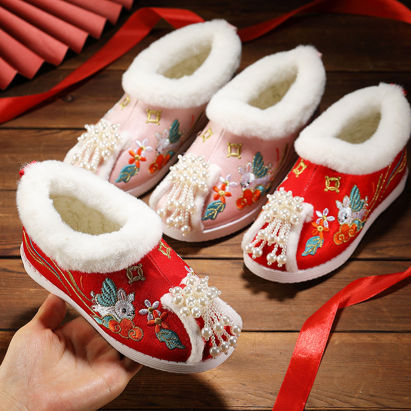 Девушки Ханфу обувь зимняя хлопковая обувь из летающих кроликов.