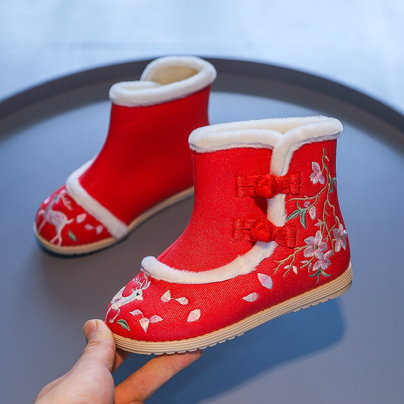 Утепленные этнические детские ботинки, ханьфу, короткие сапоги, этнический стиль