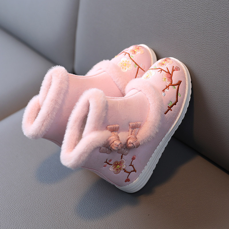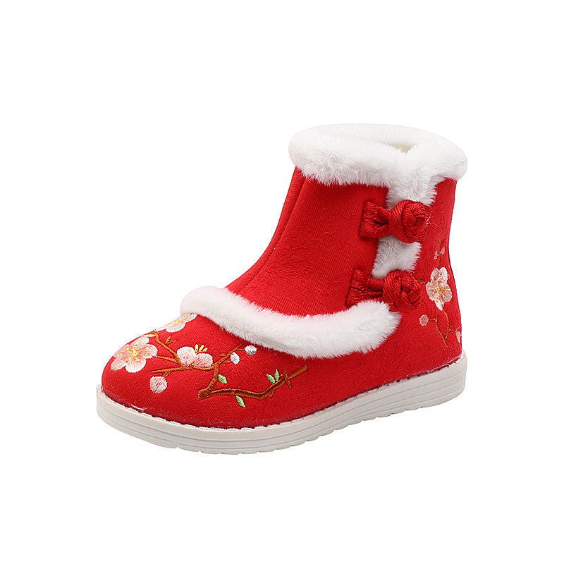 Ханьфу, утепленная обувь, красные детские зимние ботинки