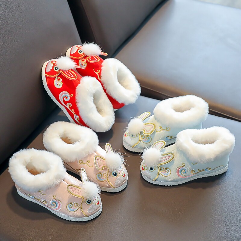 Зимнее детское ханьфу, утепленная обувь, короткие сапоги, китайский стиль