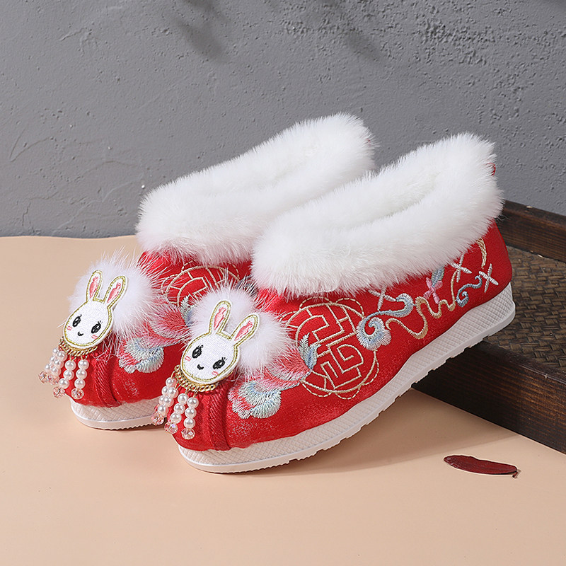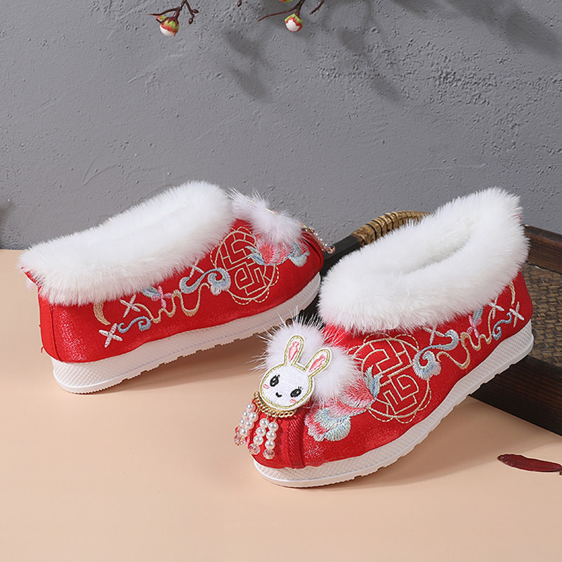 Ханьфу, флисовые детские короткие сапоги, мягкая подошва, китайский стиль