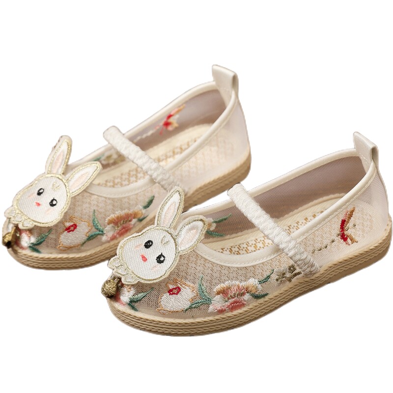 Девушки Hanfu Shoes Summer Net Step 2024 Новый кролик костюм Древний стиль вышитый цветочный ботинок