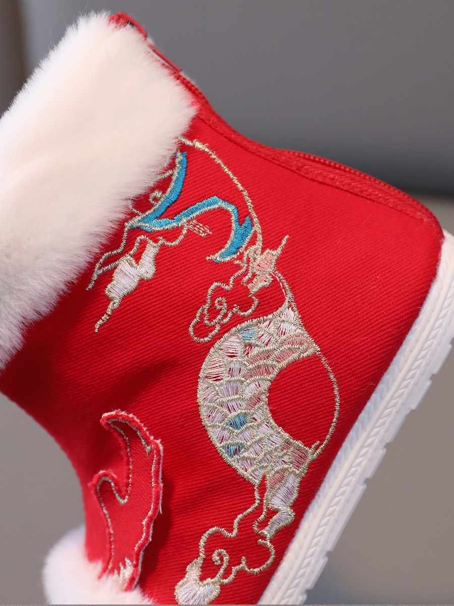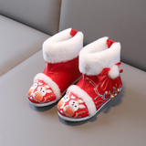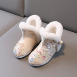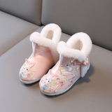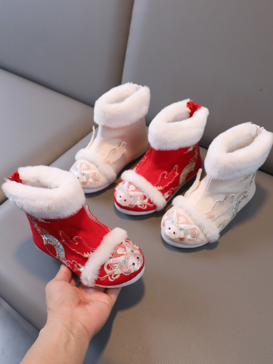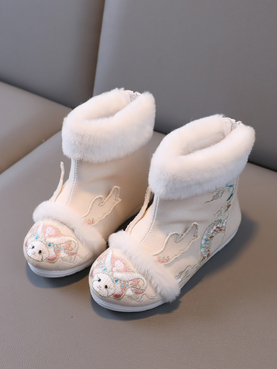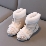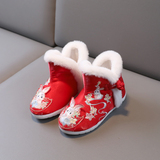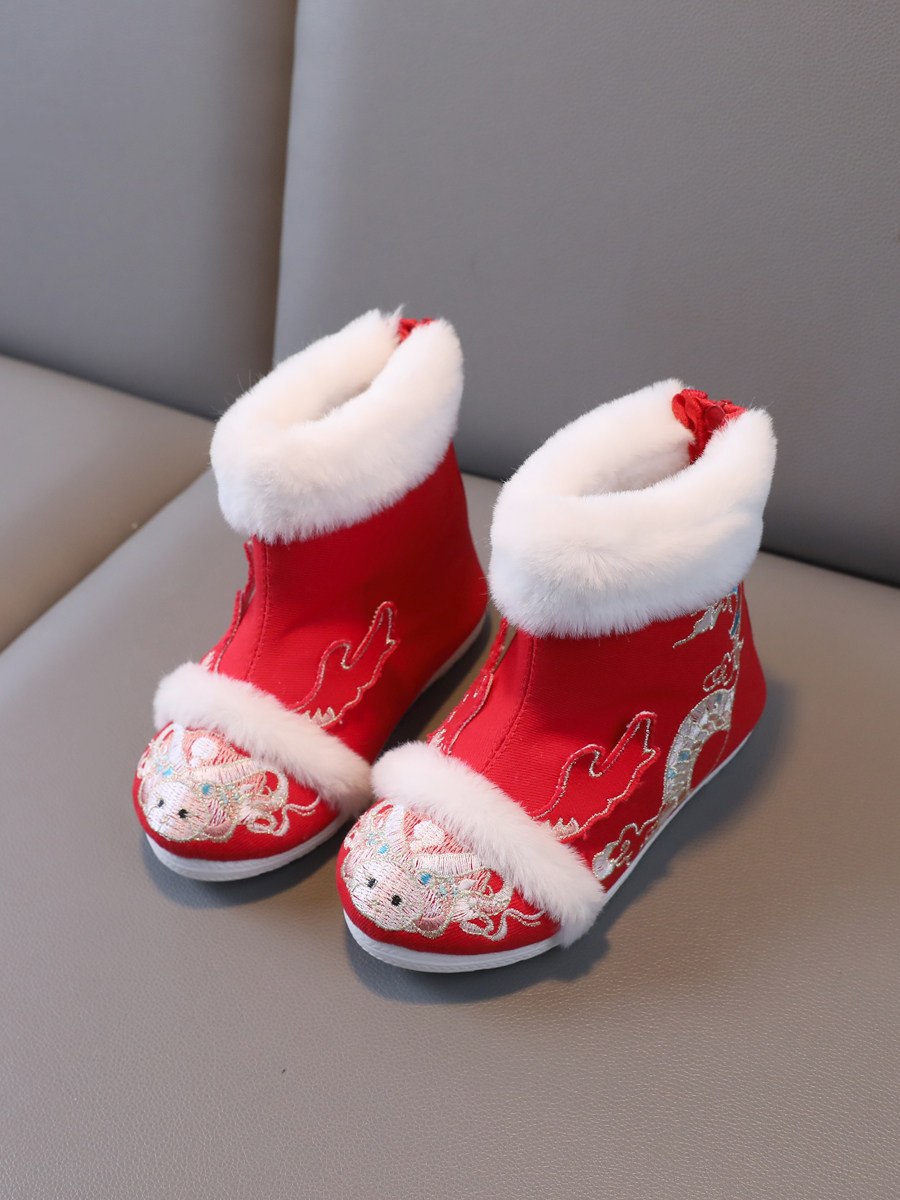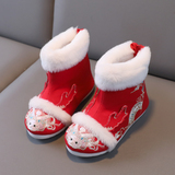 2024 Dragon Year Girl Hanfu Boots Древний ветер Новая вышитая хлопка и китайская костюма Зимняя детская новогодняя обувь