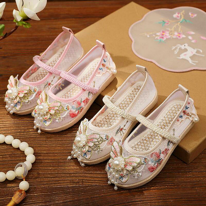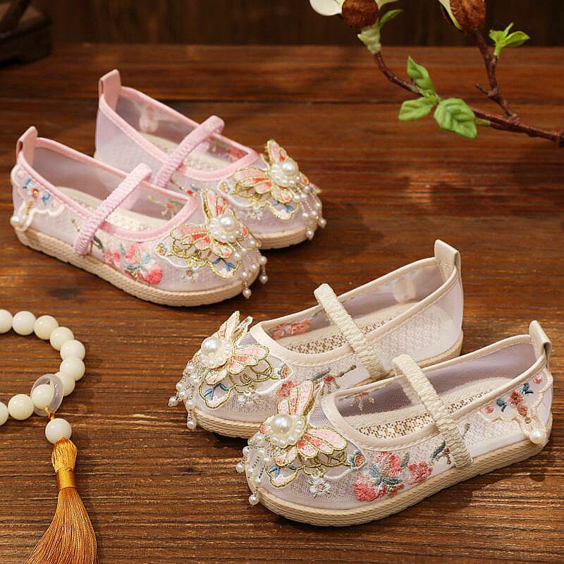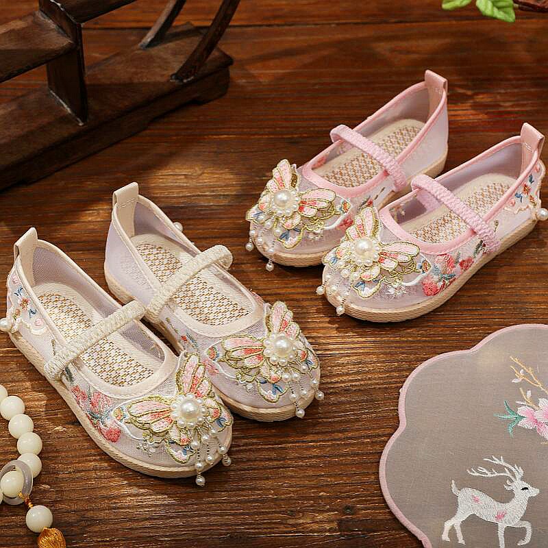 Ханьфу, летняя обувь, сетчатые детские ретро сандалии