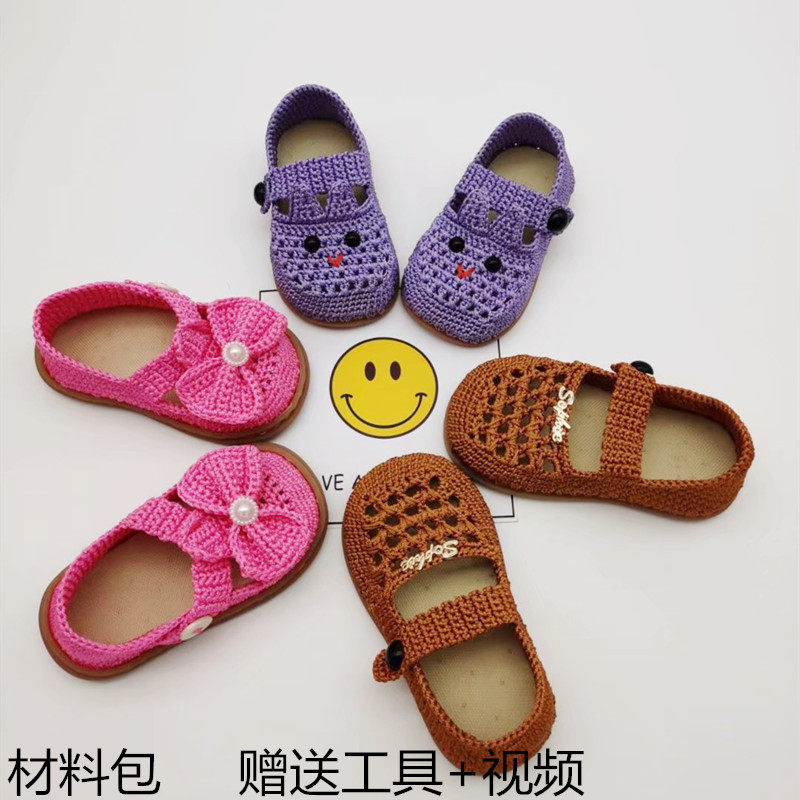 Плетеный крючок для вязания ручной работы, детский набор материалов, детская обувь для раннего возраста, нескользящая износостойкая подошва
