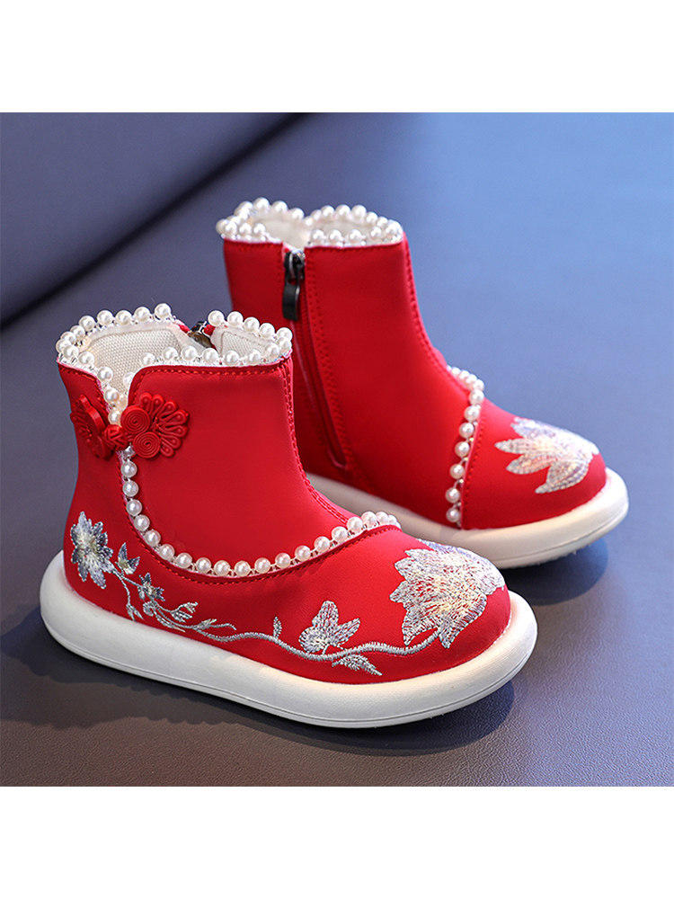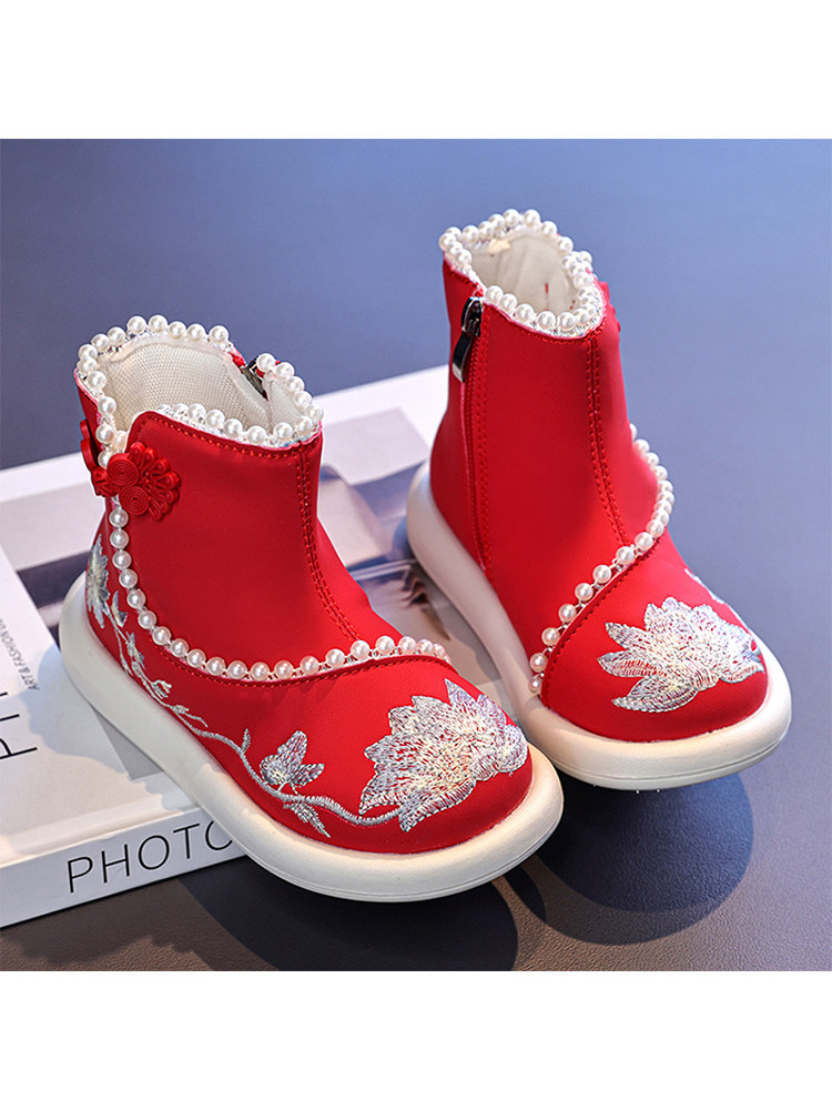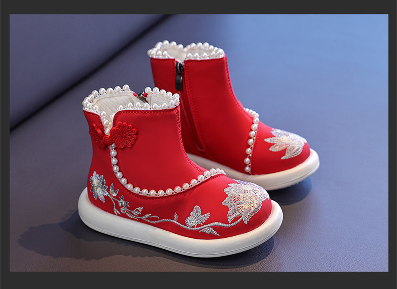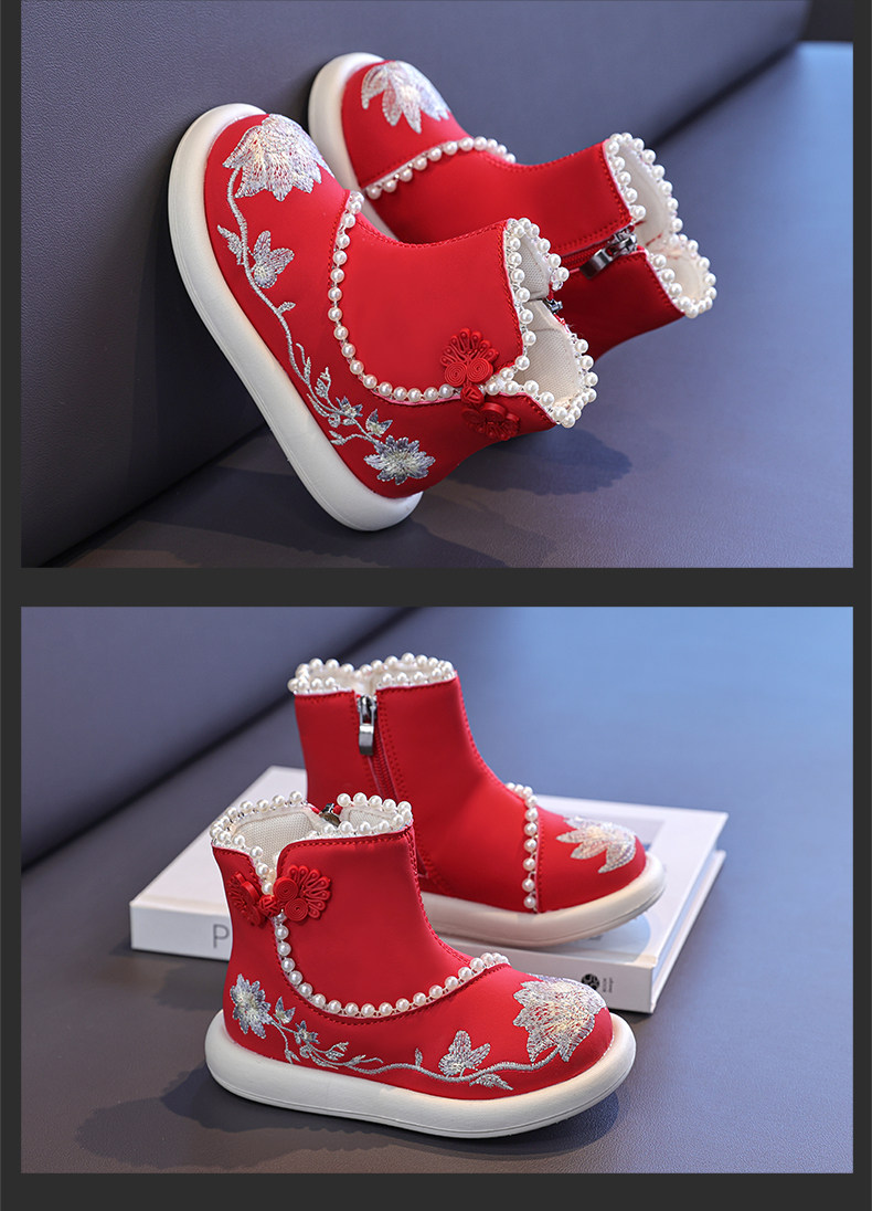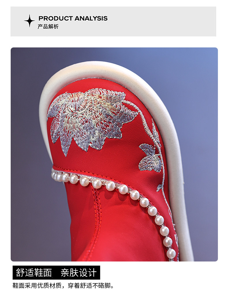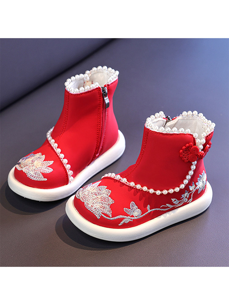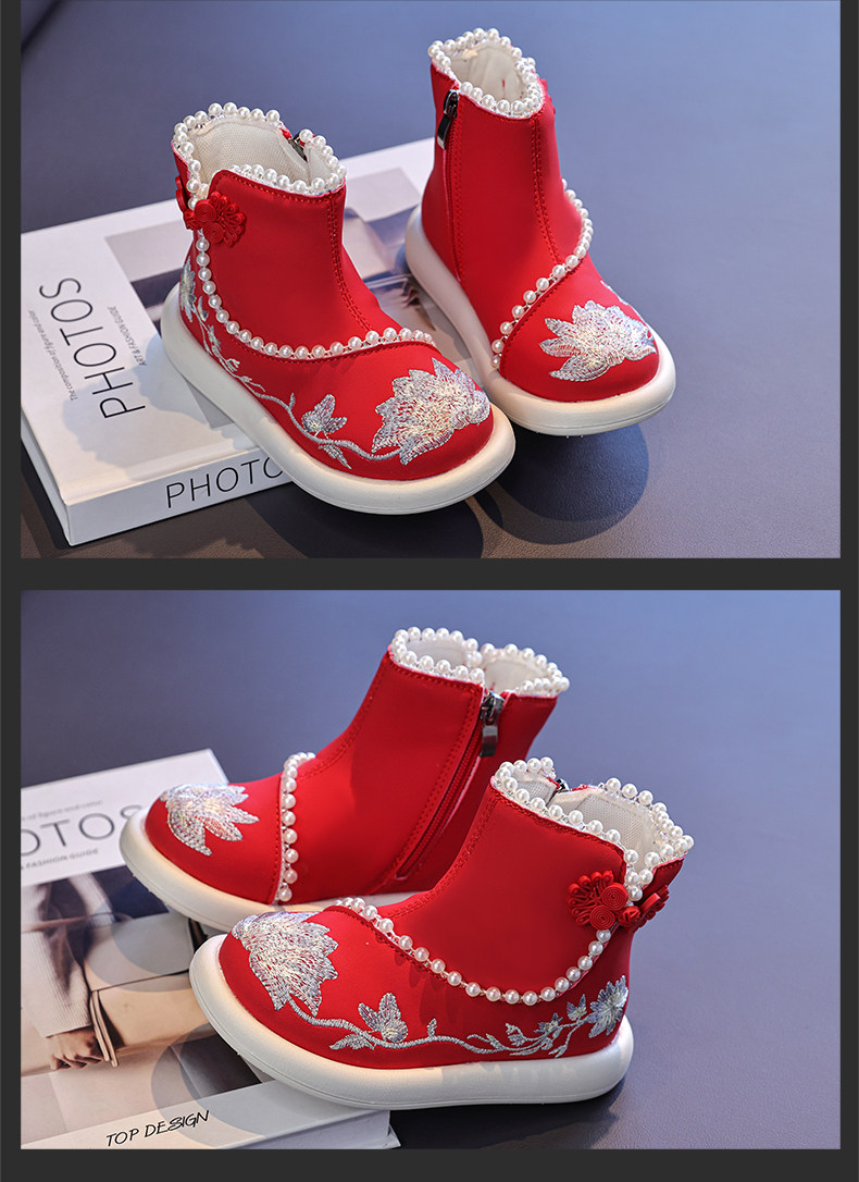 Обувь Hanfu для девочек, осень и зима 2025, новая детская юбка с конским лицом, красная новогодняя обувь для девочек, обувь принцессы в старинном стиле с вышивкой