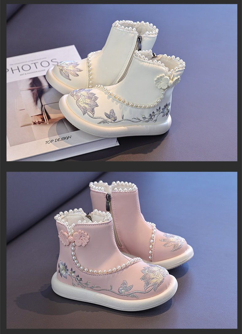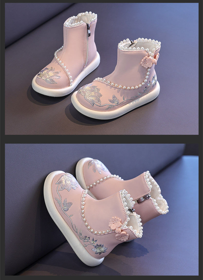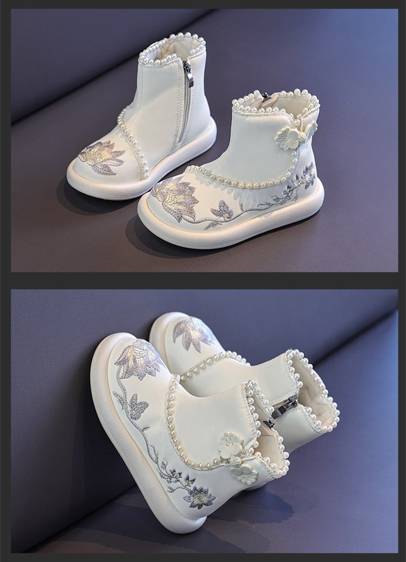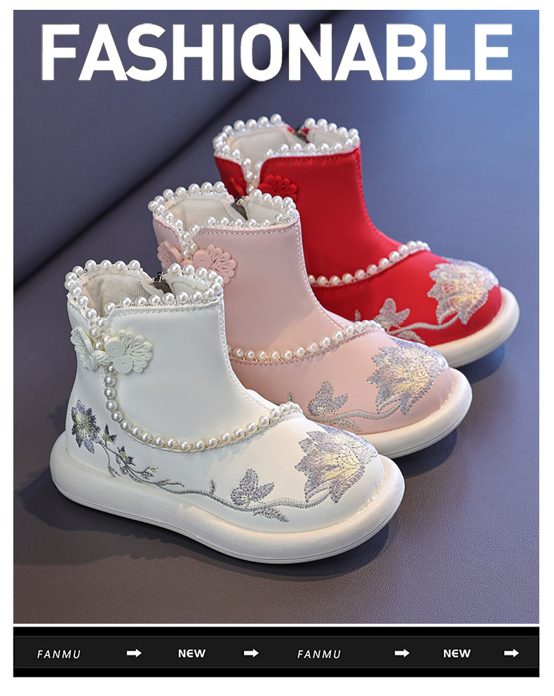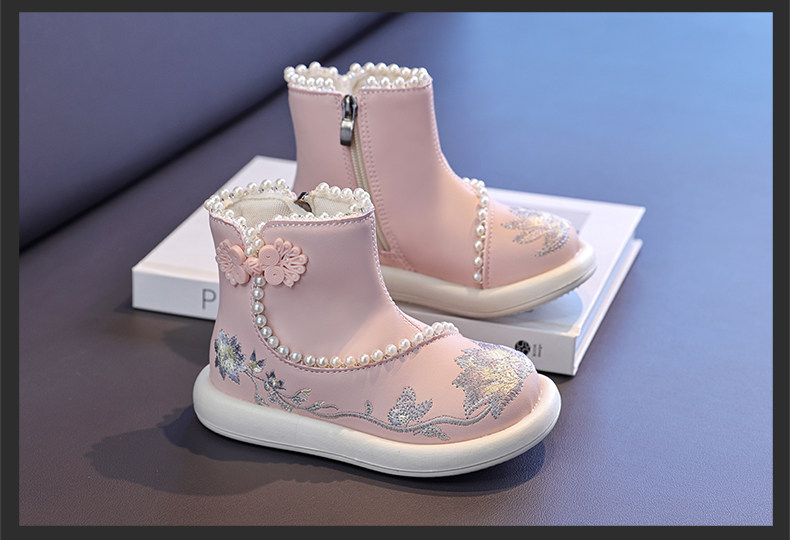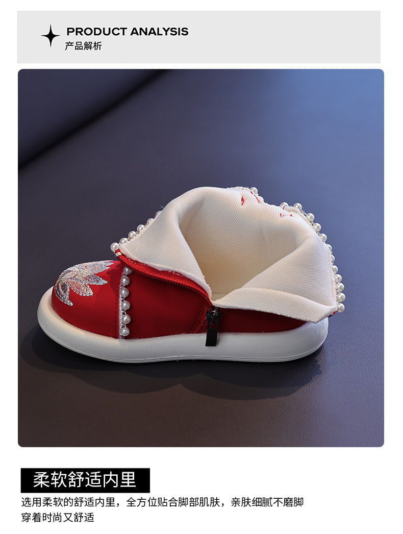 Обувь Hanfu для девочек, осень и зима 2025, новая детская юбка с конским лицом, красная новогодняя обувь для девочек, обувь принцессы в старинном стиле с вышивкой