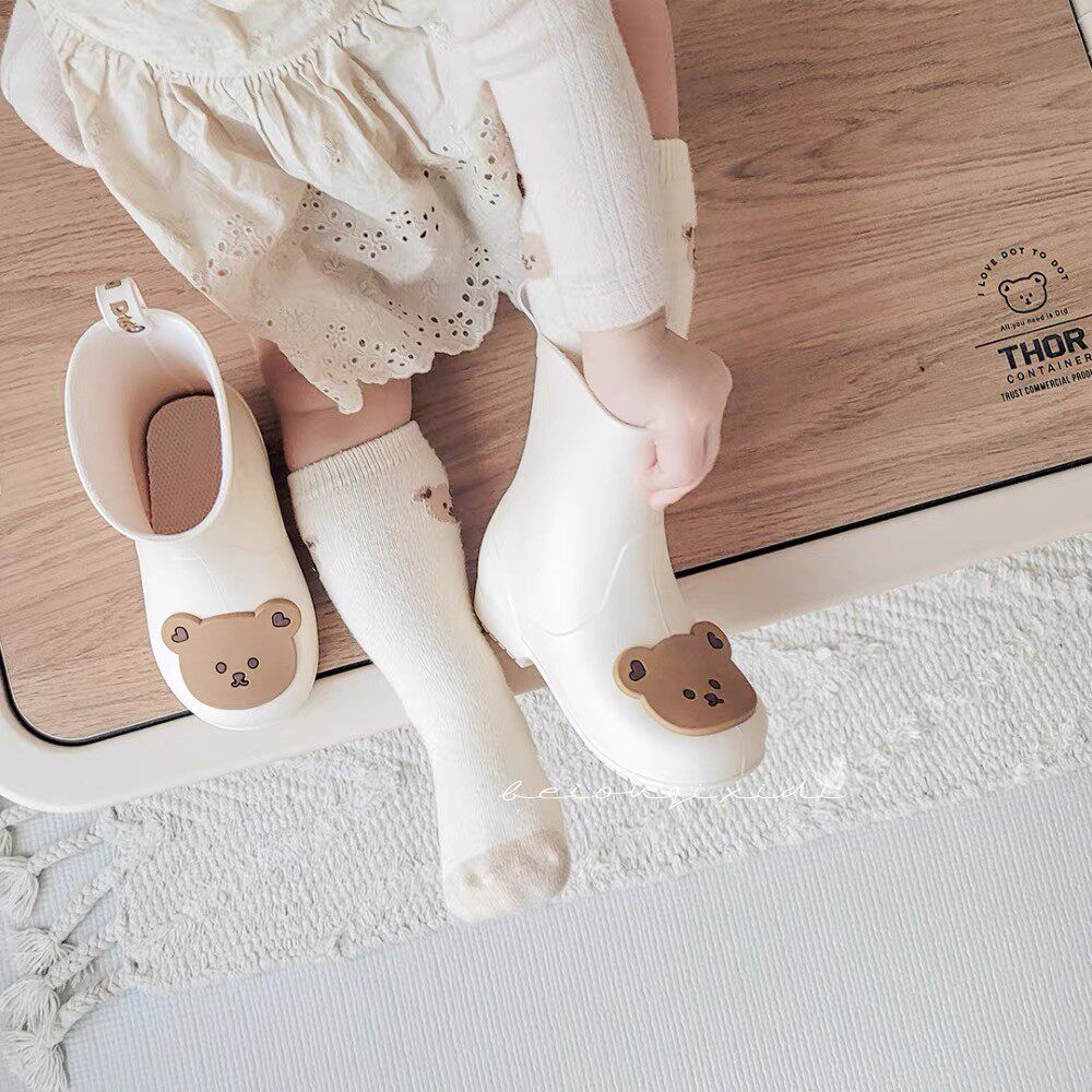 Брендовый детский дождевик, нескользящая мультяшная обувь для раннего возраста, детские дорожные сапоги, с медвежатами